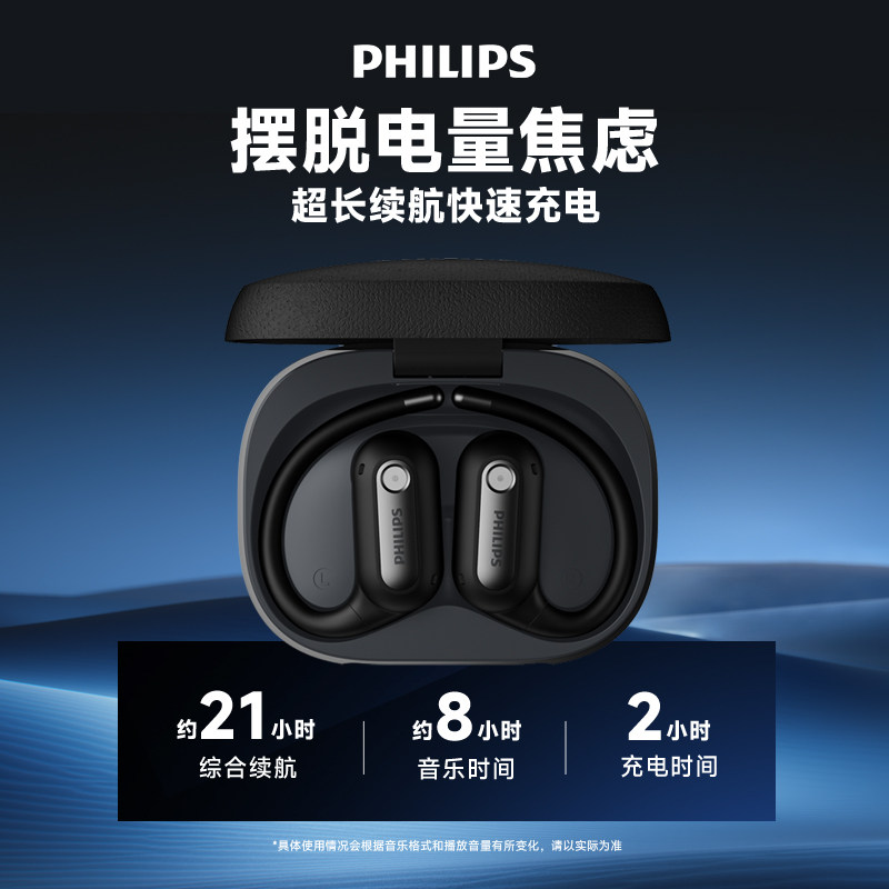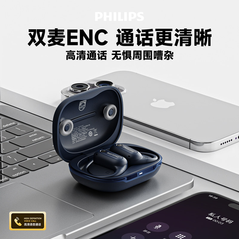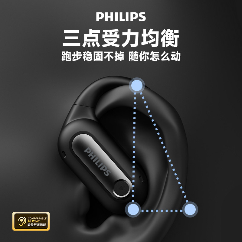飞利浦新款挂耳式蓝牙耳机TAT4759开放式不入耳高清立体音质耳机