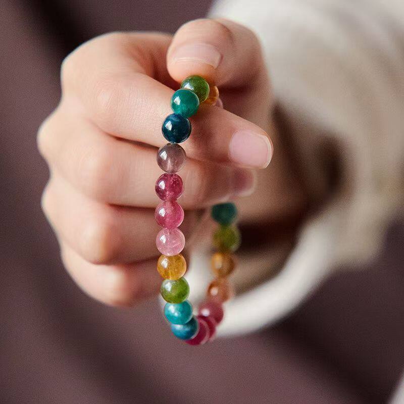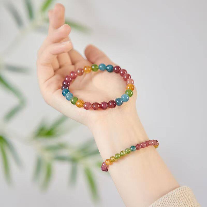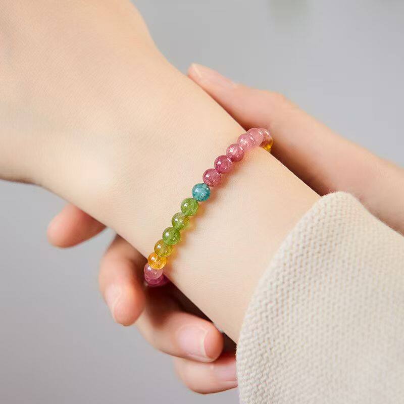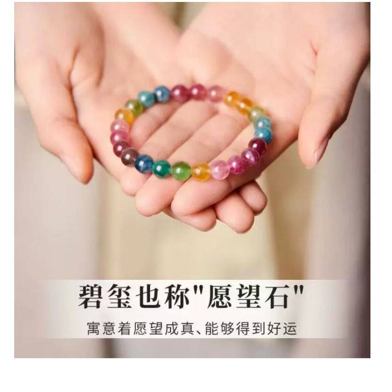 天然糖果碧玺手链女 老矿西瓜碧玺彩虹马卡龙单圈水晶手串送礼