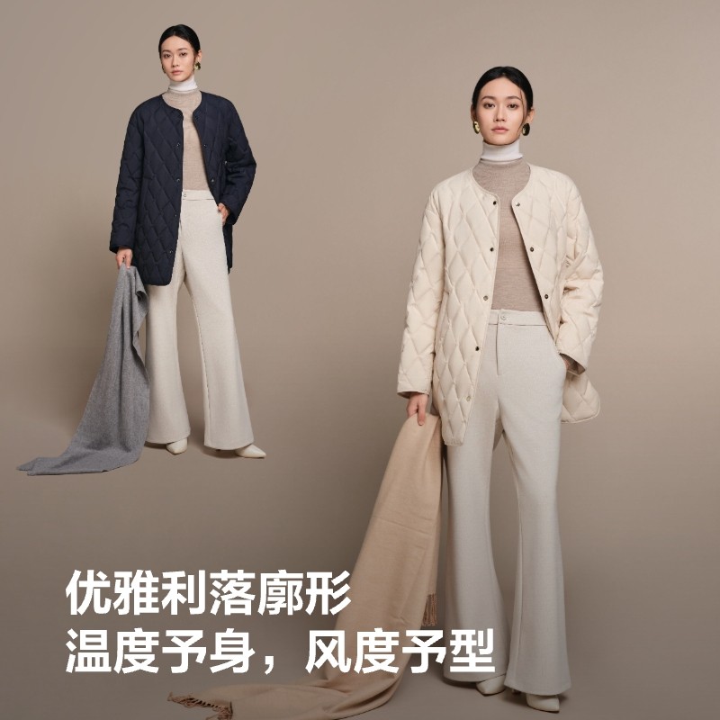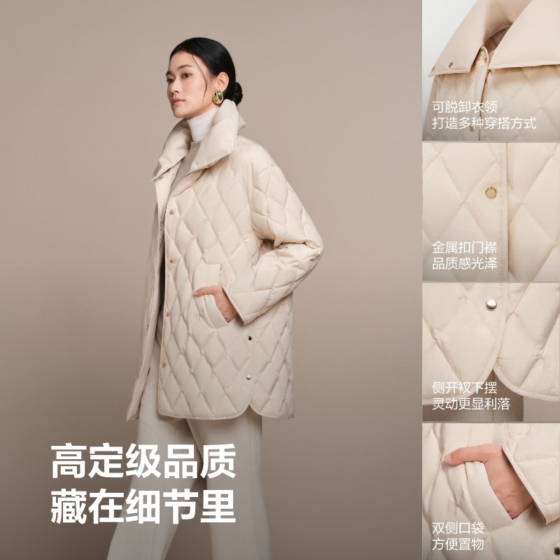 波司登25秋季新款女送可拆卸围脖领[鹅绒]中长款小香风老钱羽绒服