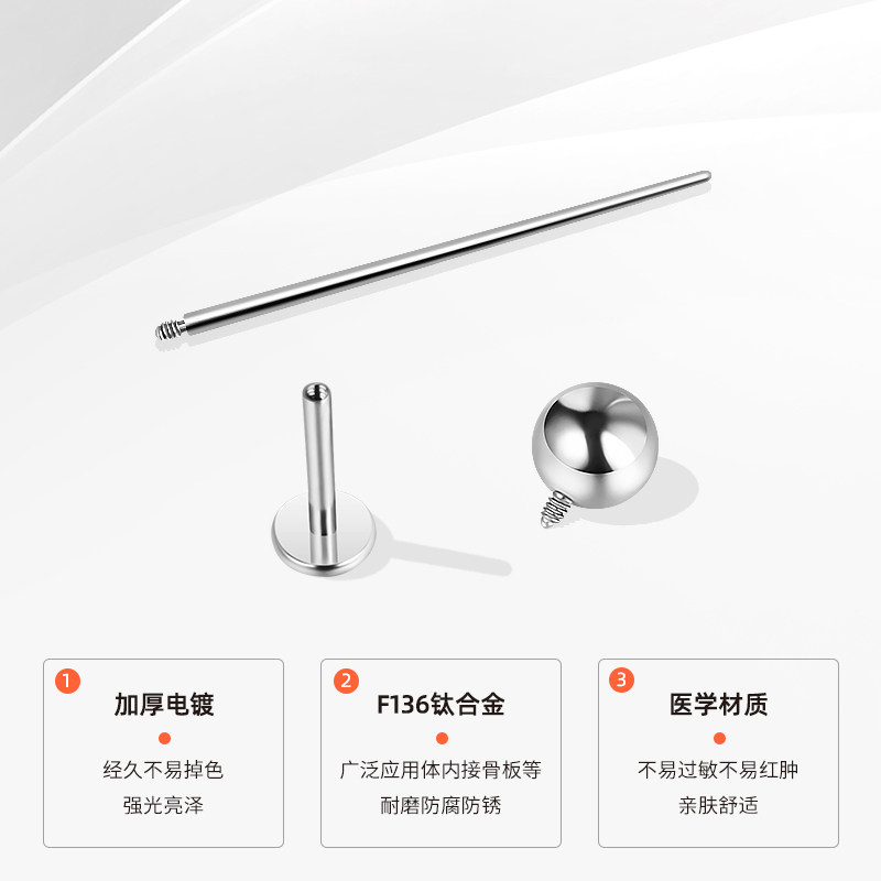 医用F136钛合金养耳洞耳钉女睡觉免摘耳骨钉唇钉耳环男螺丝扣耳饰