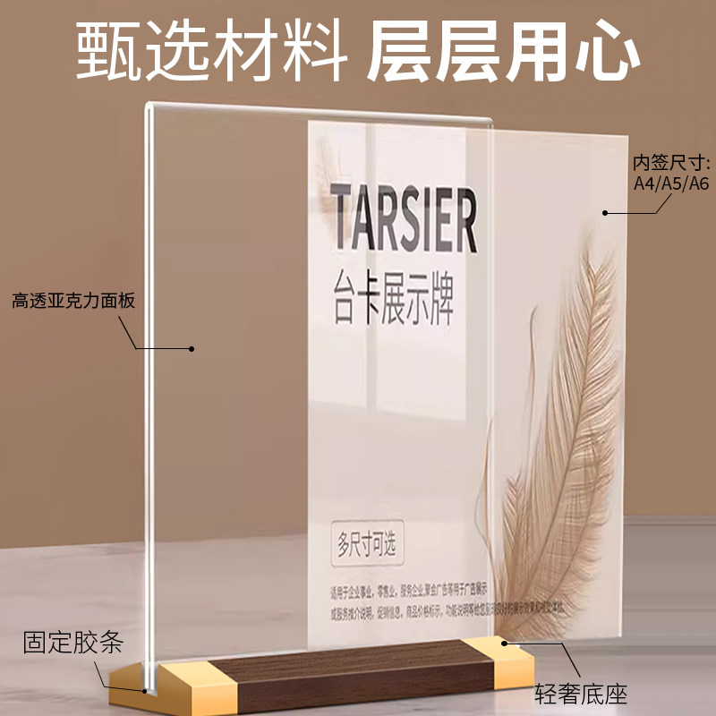木质亚克力台卡桌牌酒店民宿客房台签餐饮透明双面展示牌a4价目表牌子小广告标价牌餐厅菜单桌签桌面立式台牌