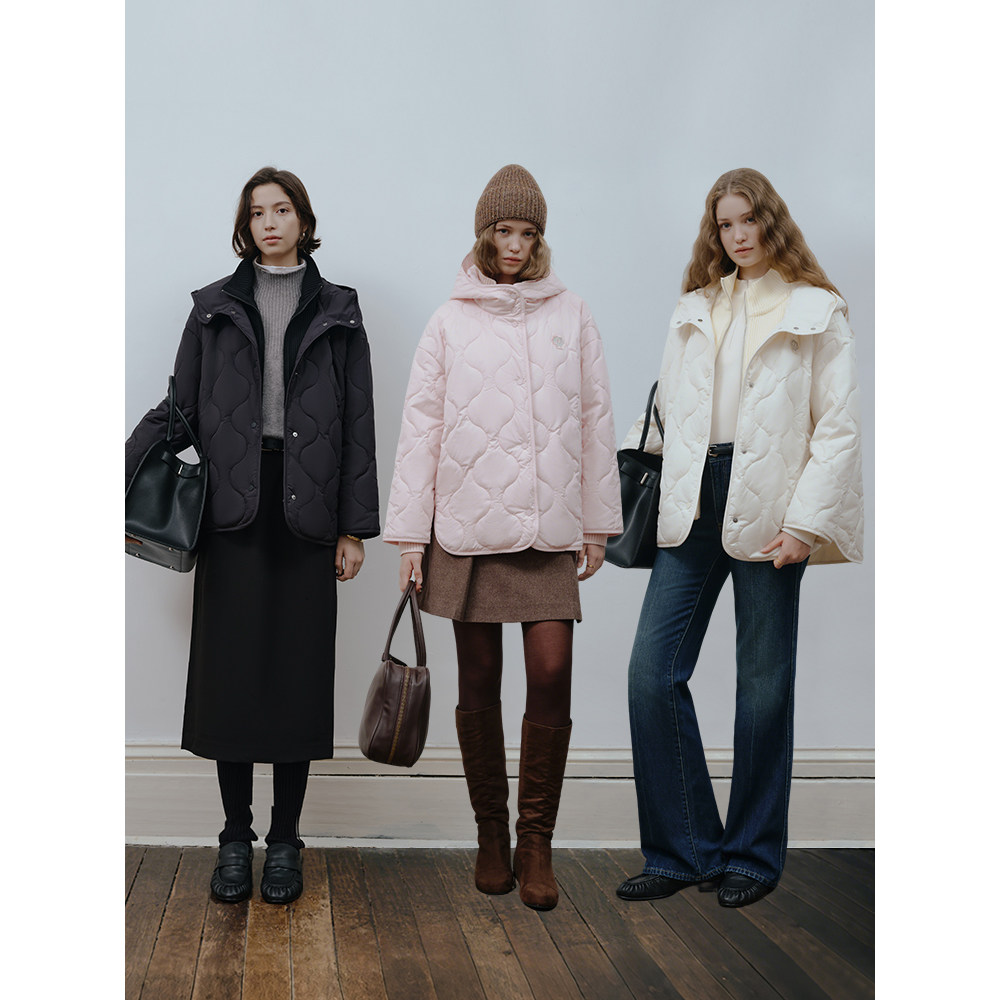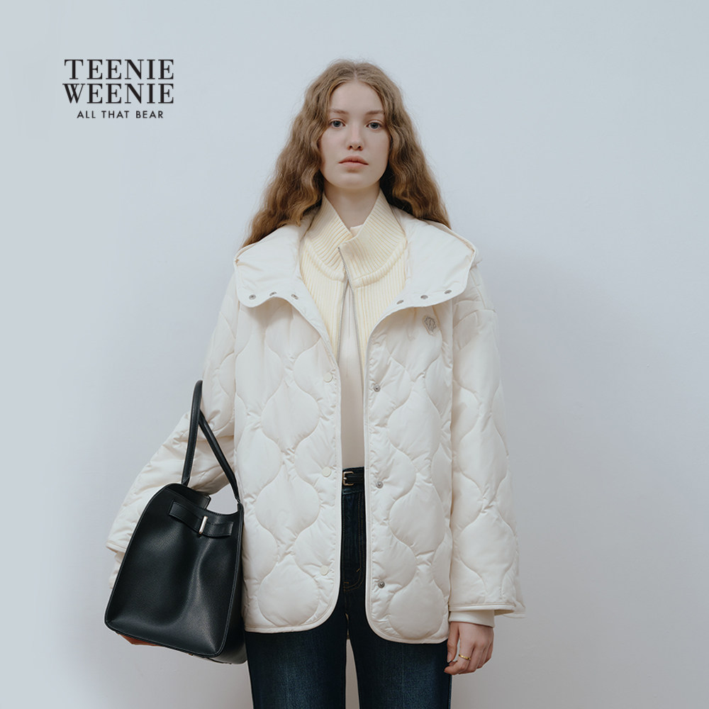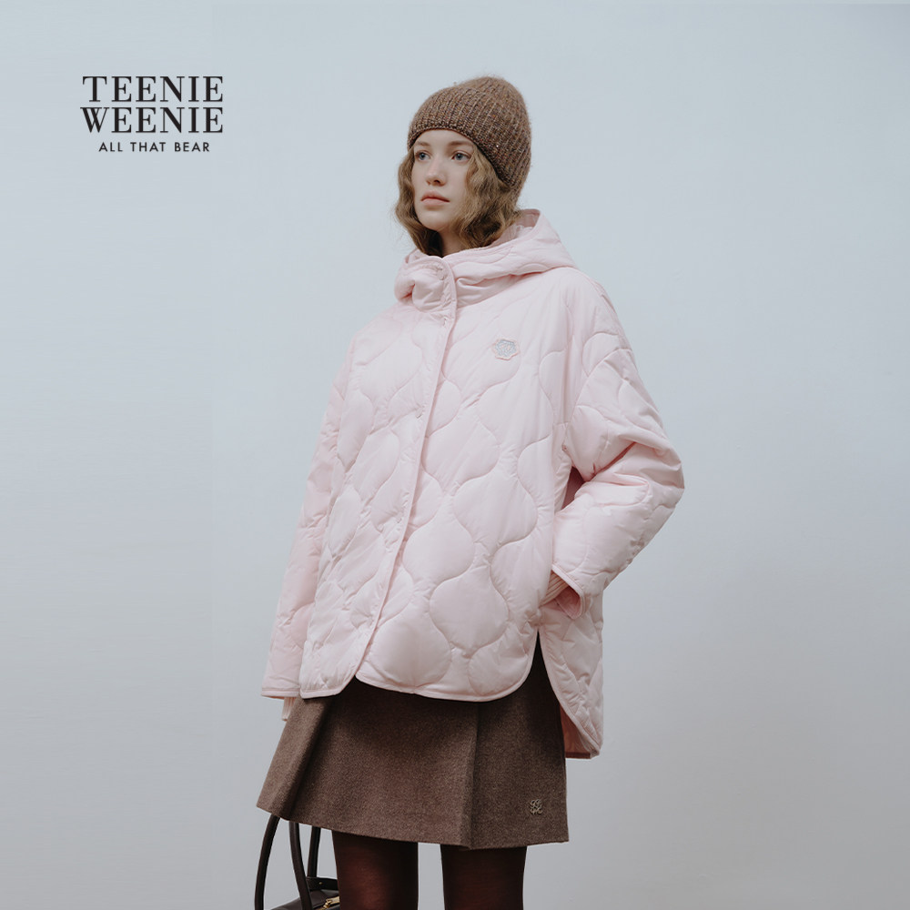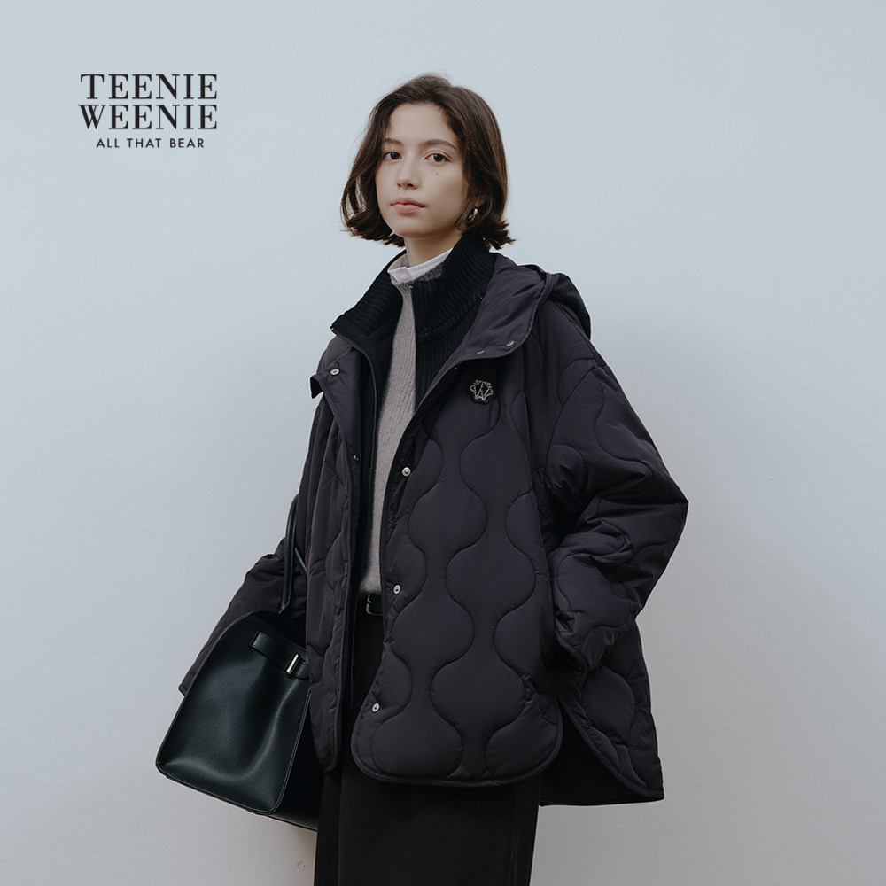 TeenieWeenie小熊女装棉服冬款时尚舒适宽松菱形格绗缝连帽外套