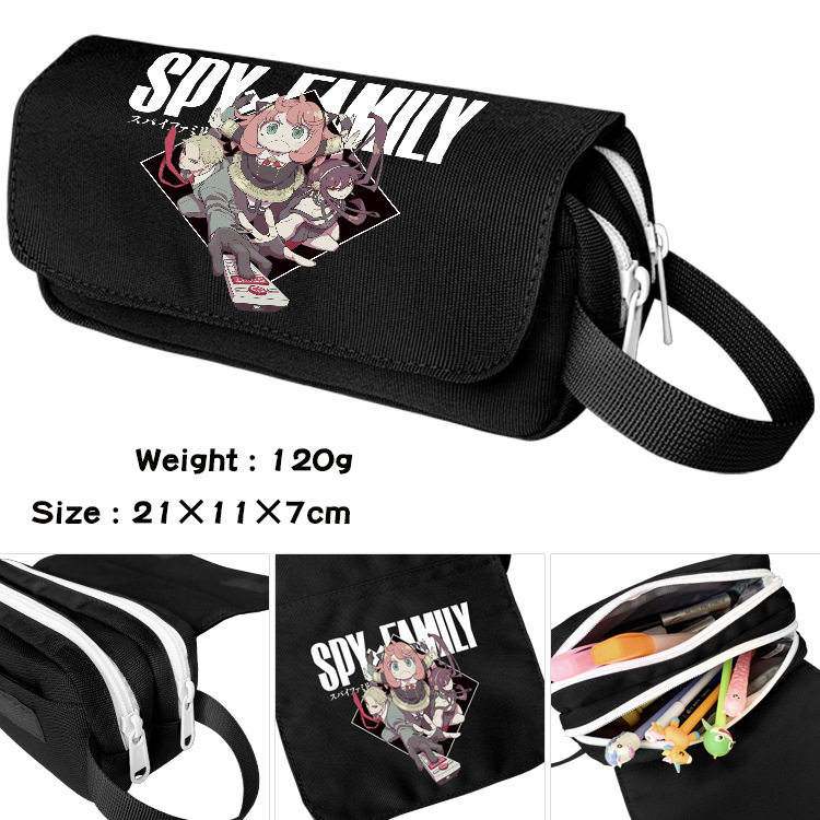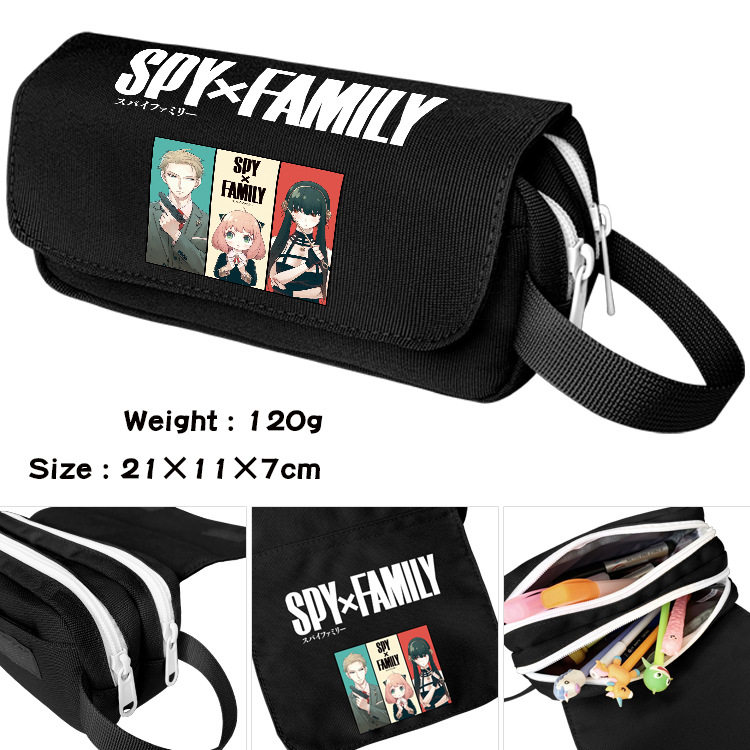 间谍过家家手提帆布防水笔袋学生双层大容量文具盒卡通动漫手拿包