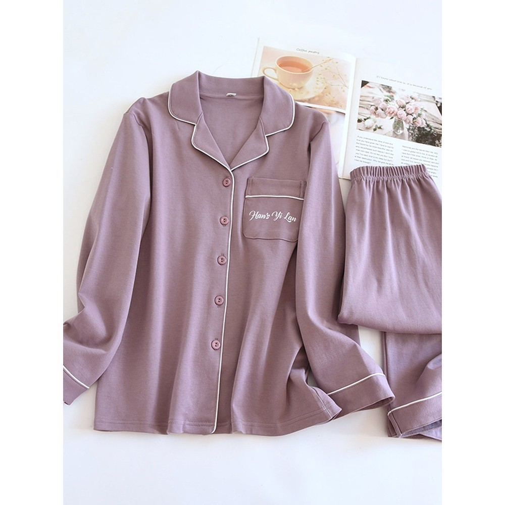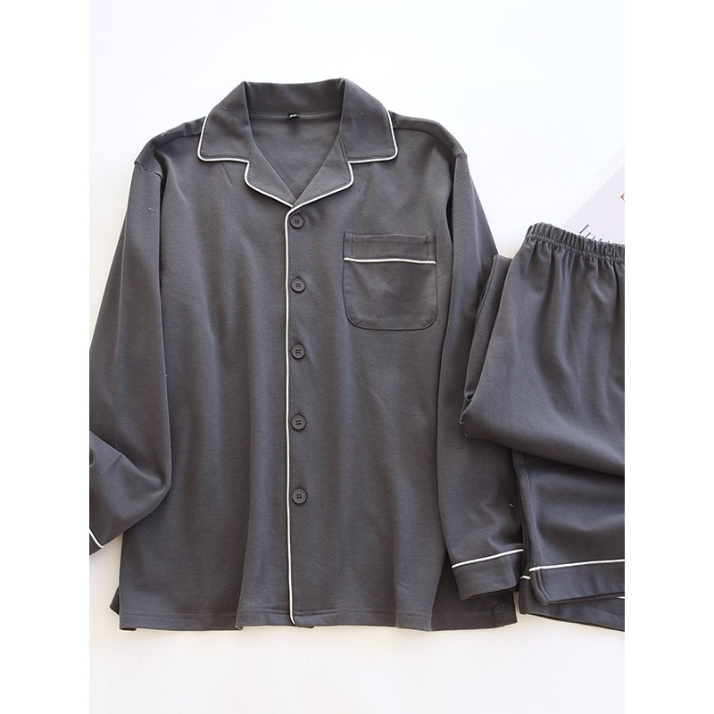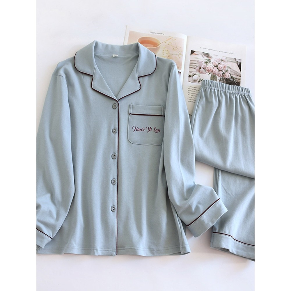 安比斯情侣睡衣舒适纯棉秋季女长袖男女同款休闲家居服套装可出门