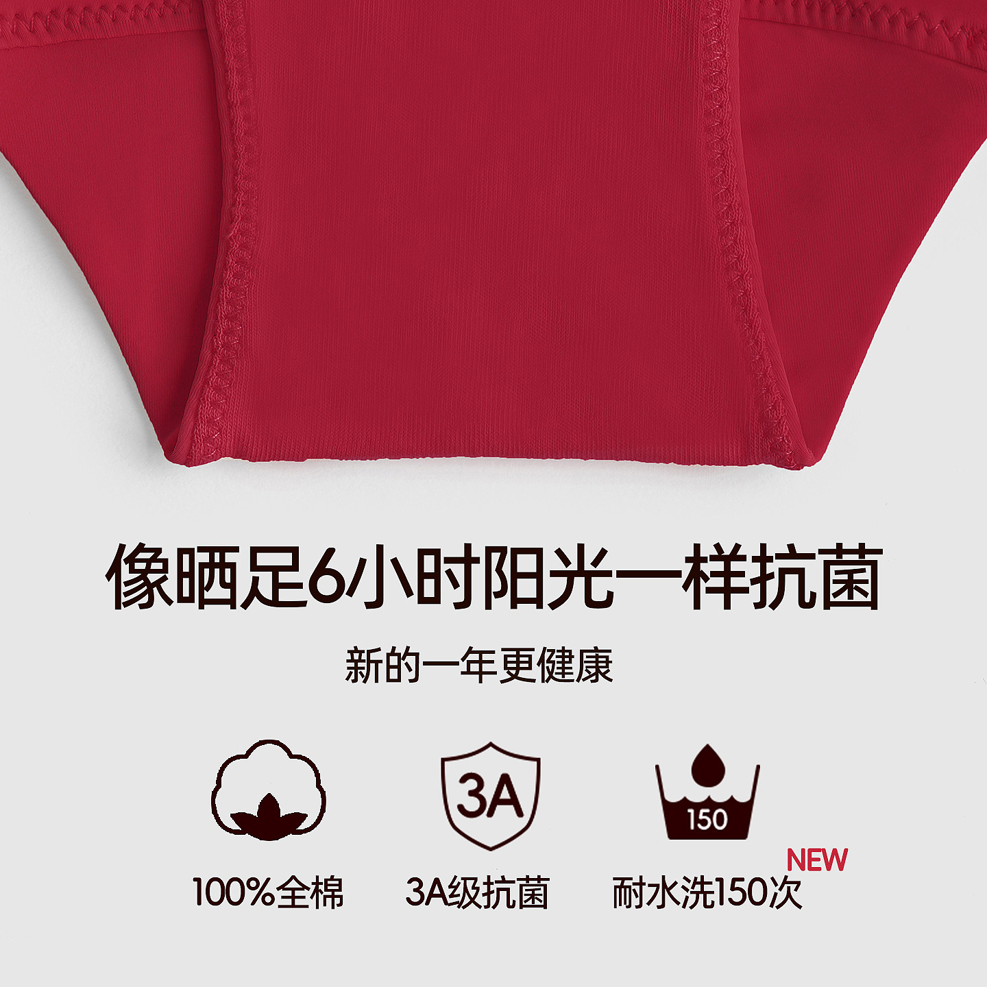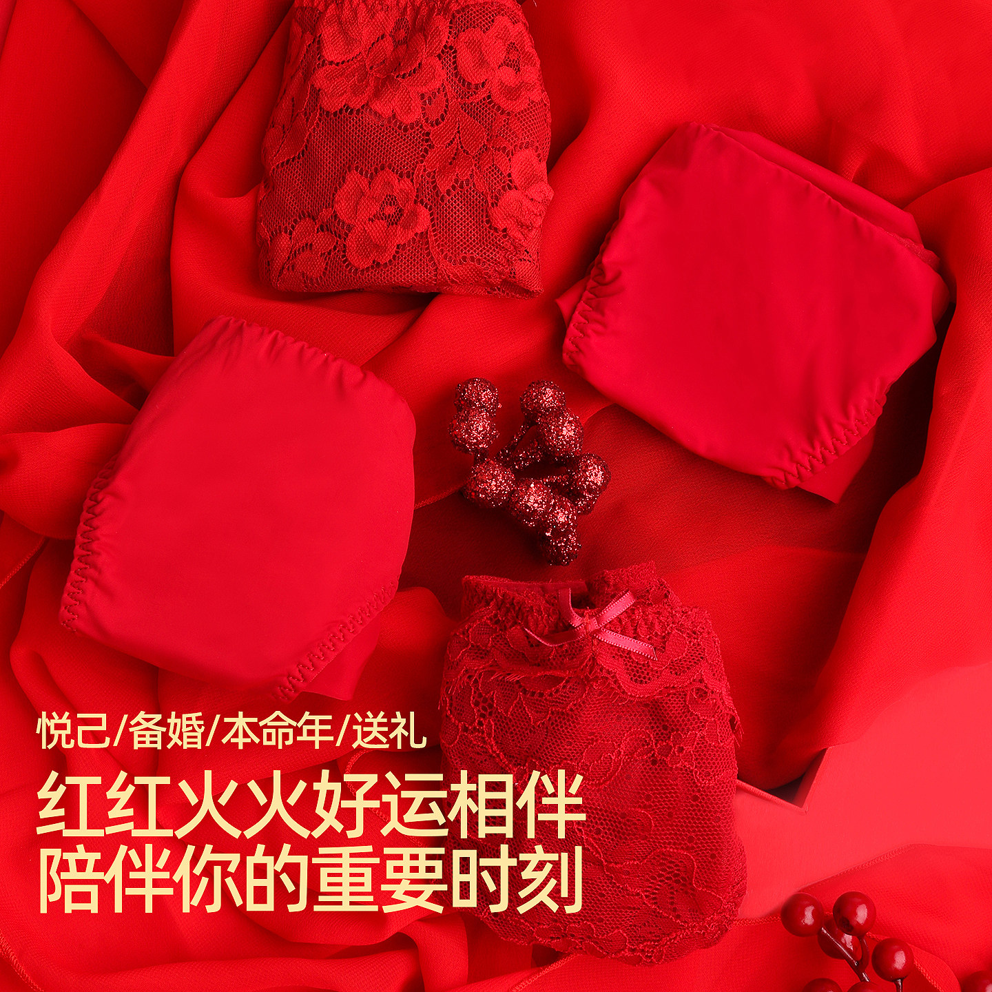 3条98元好奇蜜斯本命年三角红内裤女抗菌棉裆蕾丝性感薄无痕结婚