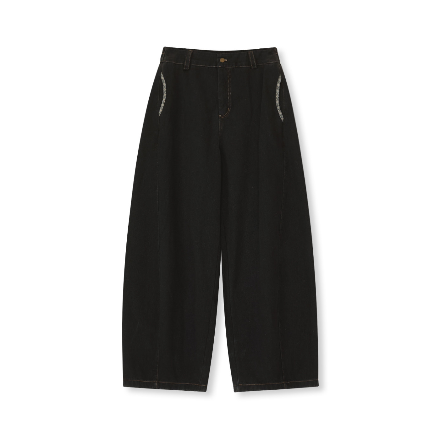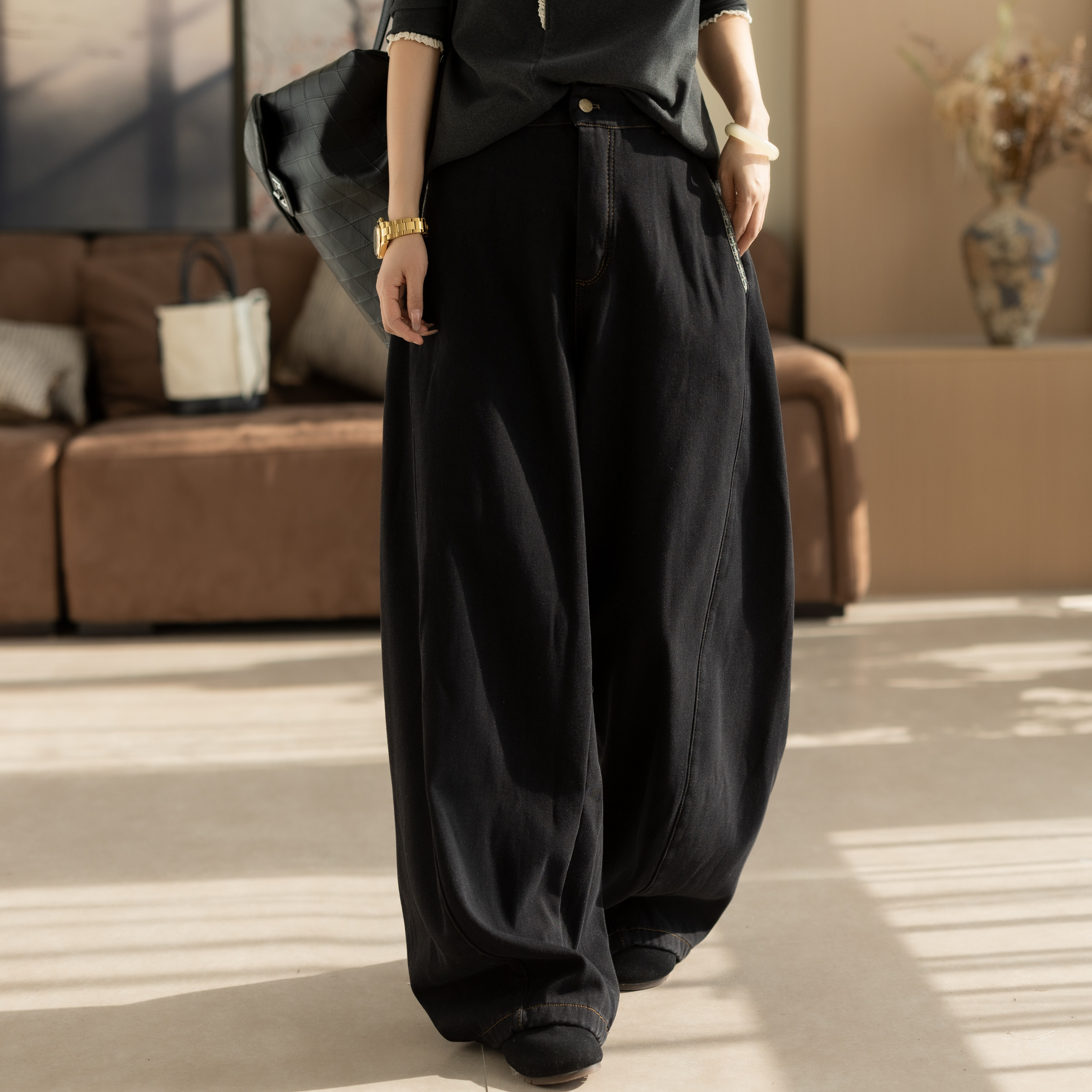 三福牛仔长裤2025新款冬季磨毛阔腿裤复古深色宽松裤子女装512304