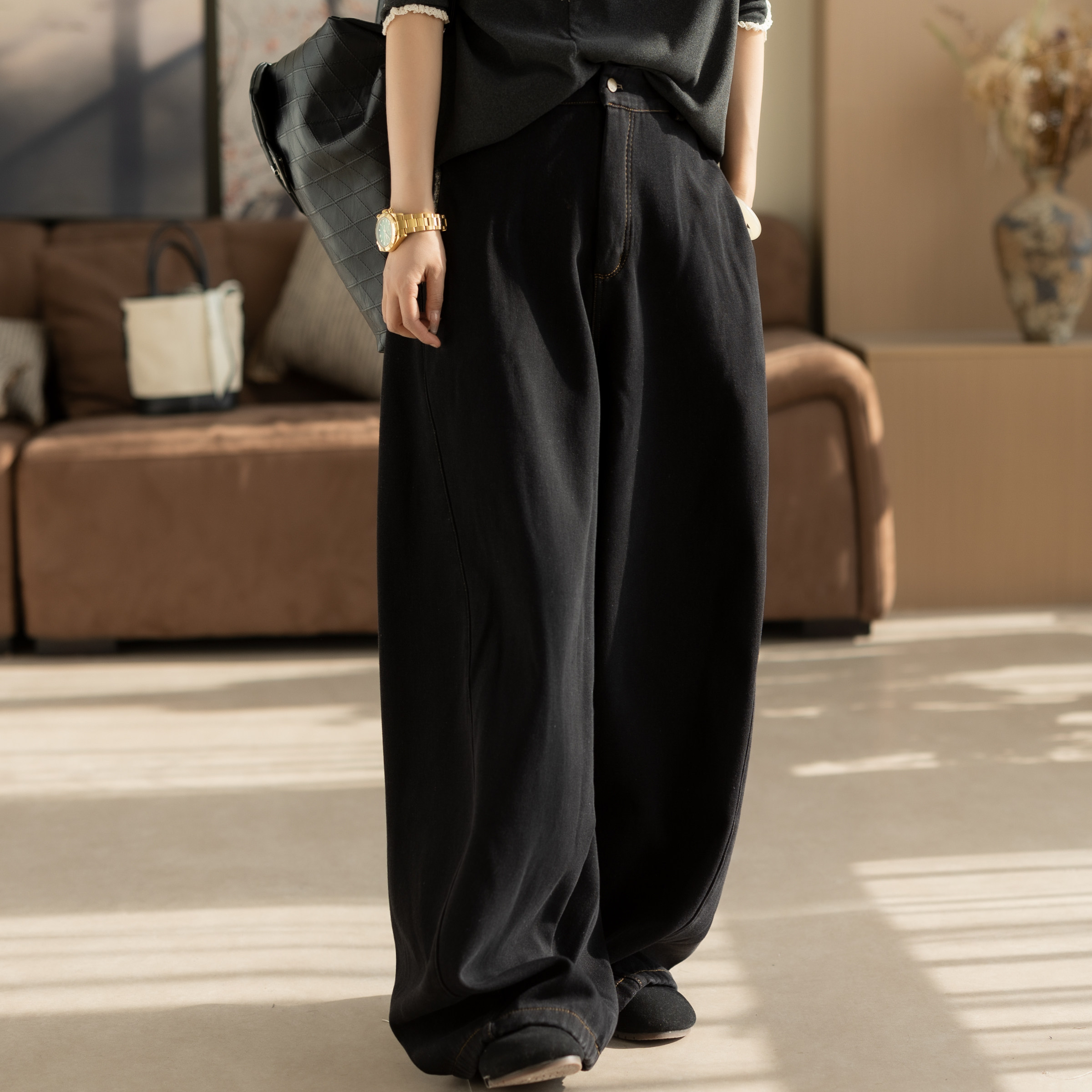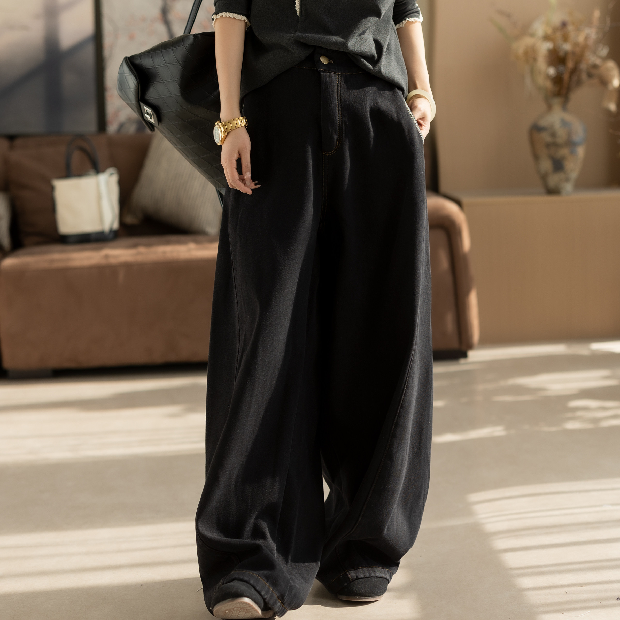 王家有鱼秋冬新款加绒阔腿裤2025百搭修身显瘦宽松直筒牛仔裤子女