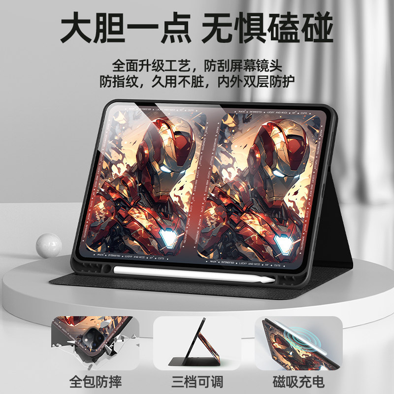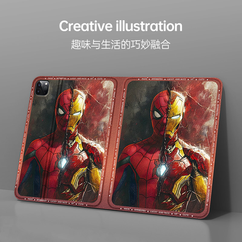适用漫威钢铁侠苹果平板ipad保护壳10十代9八8蜘蛛侠ipadair6保护套air5男款ipadpro11英寸mini6迷你4带笔槽3