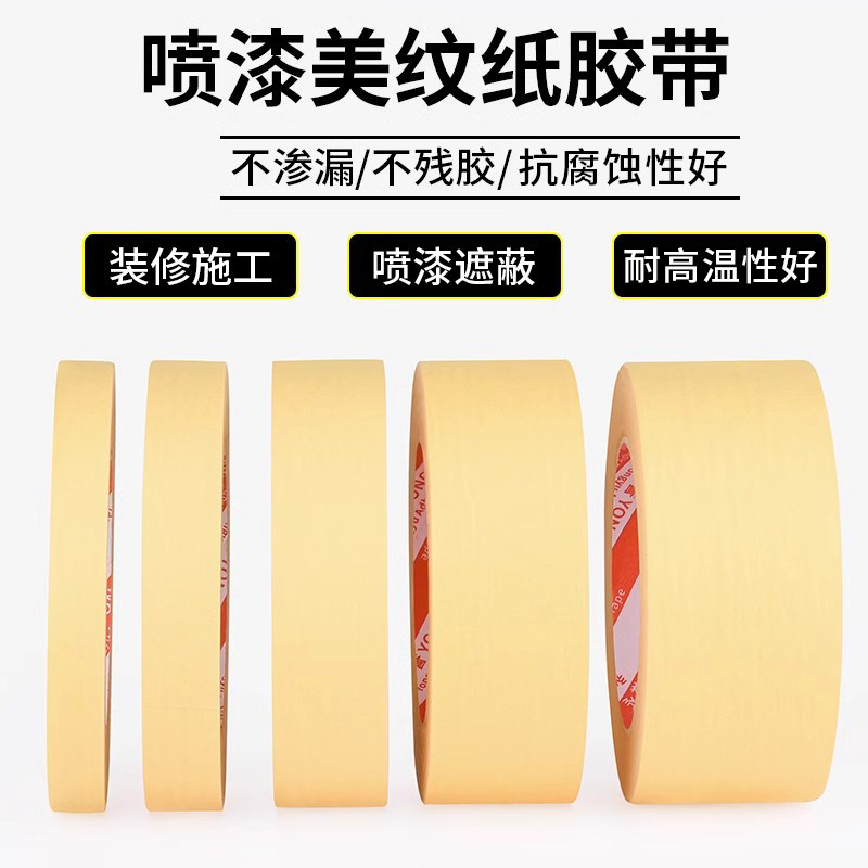 汽车美纹纸胶带耐高温性好喷涂美缝纸高粘遮蔽黄色和纸电器喷漆遮蔽保护美术生素描贴边分色纸高粘美纹纸胶带