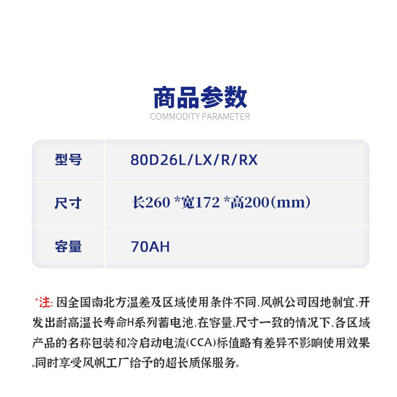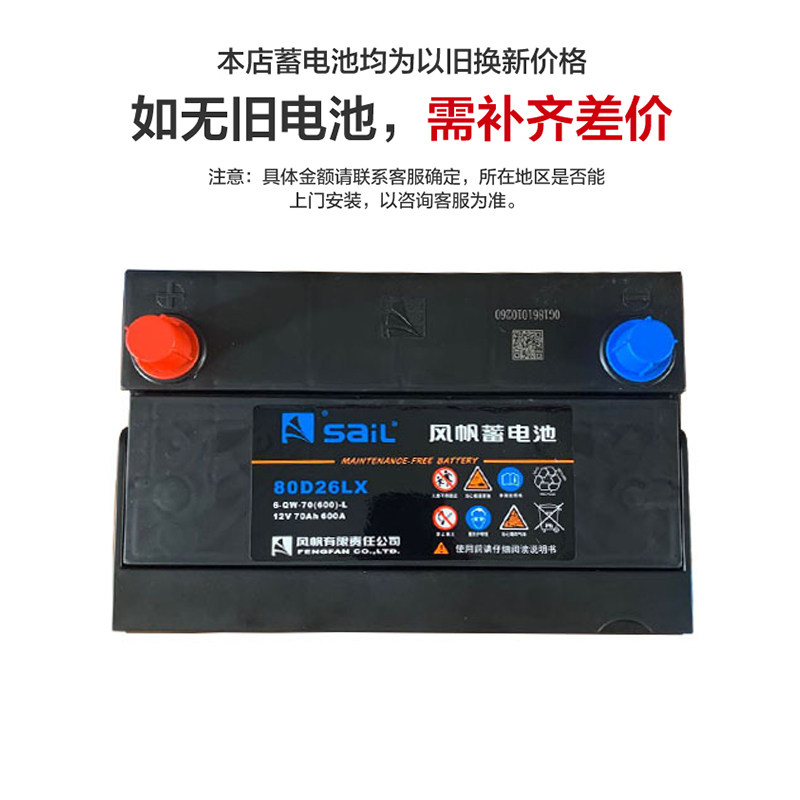 风帆80D26蓄电池70AH马6奔腾B50B70凯美瑞汉兰达皇冠锐志汽车电瓶