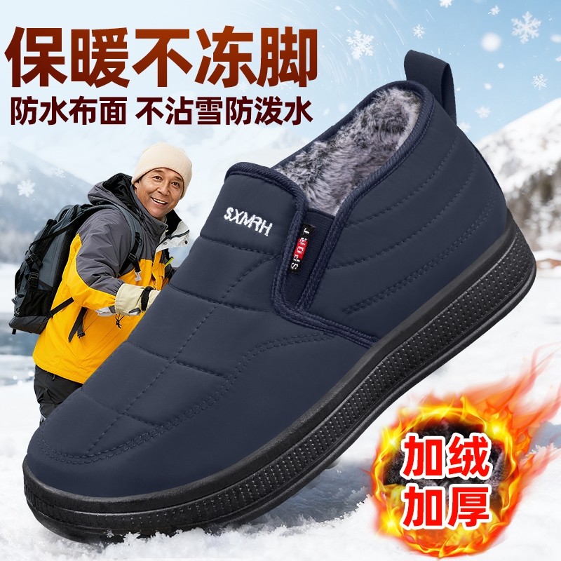 老北京布鞋男士冬季加绒防滑老人二棉鞋休闲保暖加厚中老年爸爸鞋
