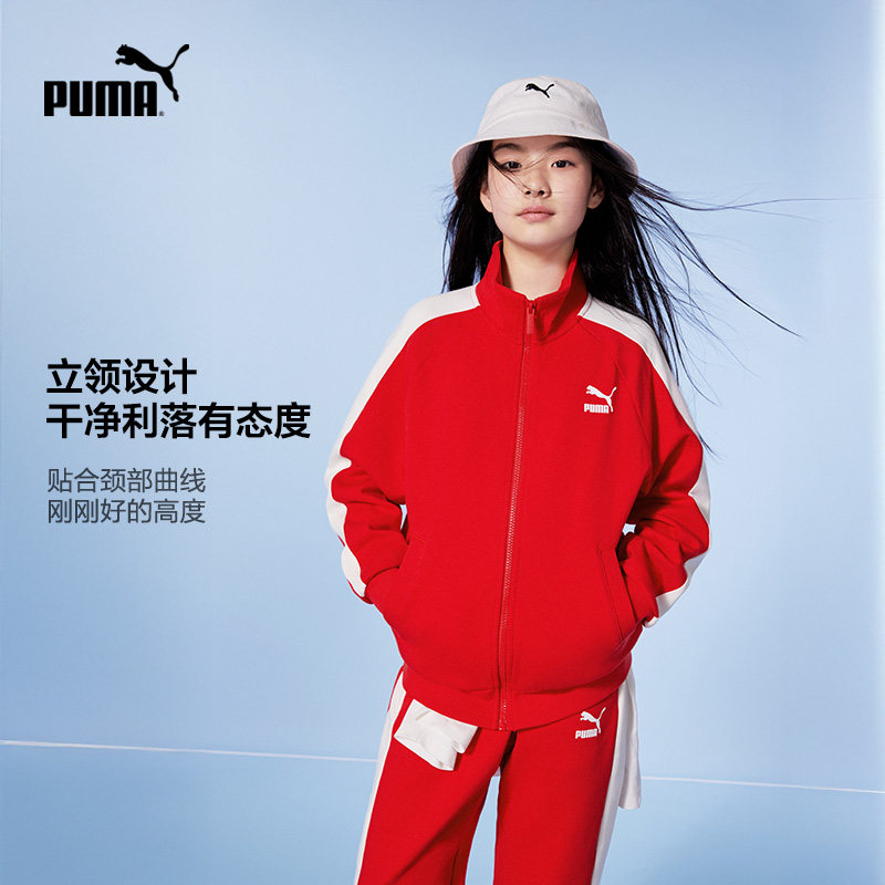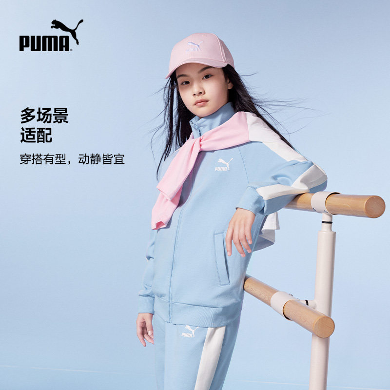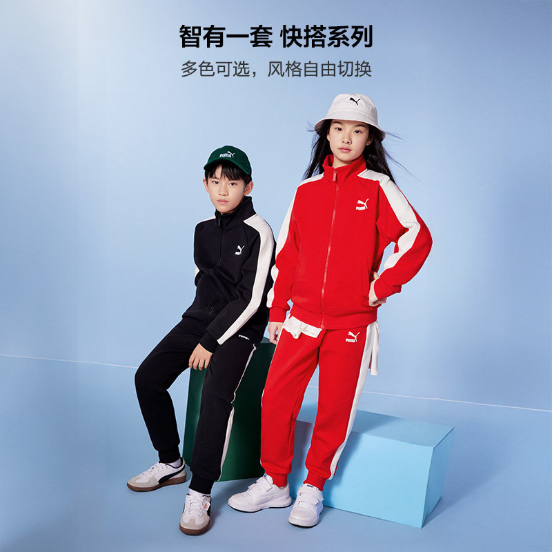 PUMA彪马童装儿童秋针织拉链外套休闲裤2件套T7复古运动潮流套装
