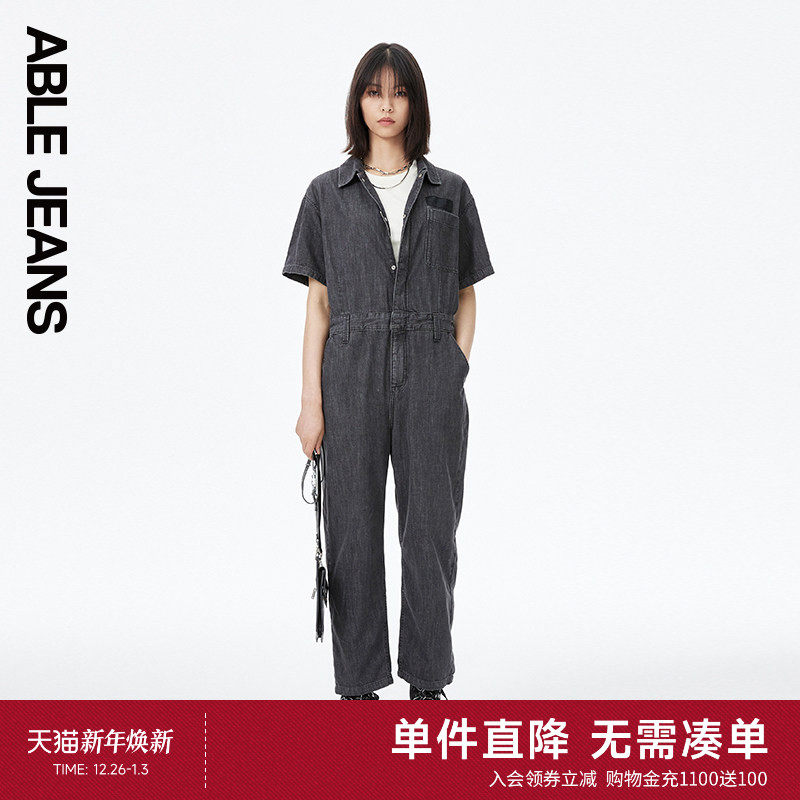 ABLE JEANS新款女士复古摩登水洗工装牛仔连体裤