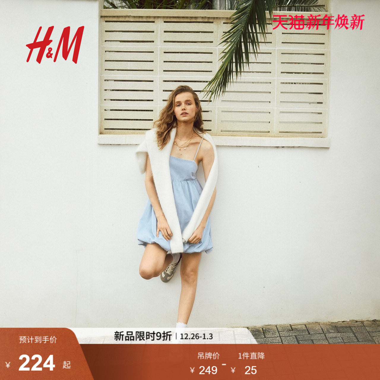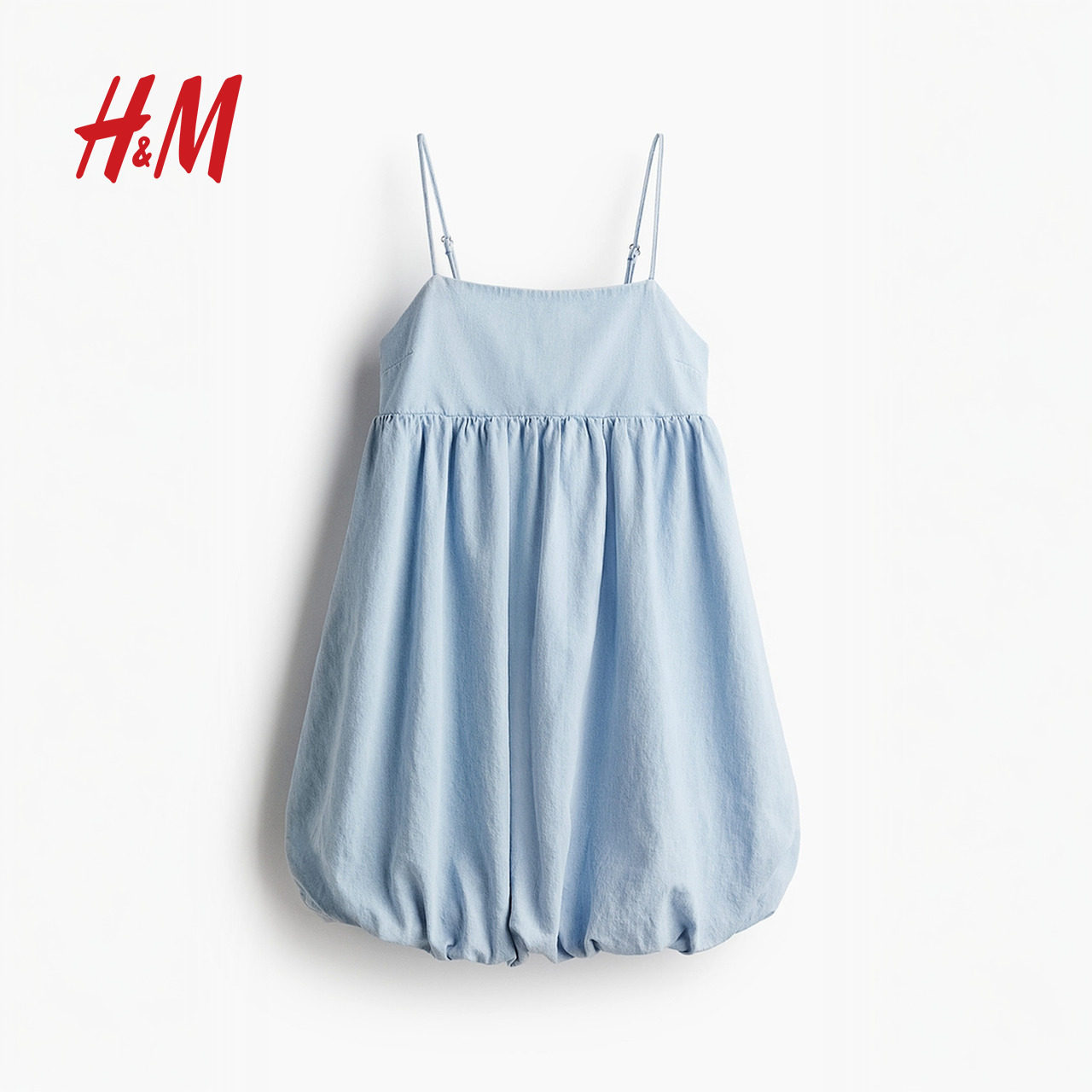 HM女装连衣裙2025秋季新款时尚吊带无袖泡泡下摆连身裙1282552