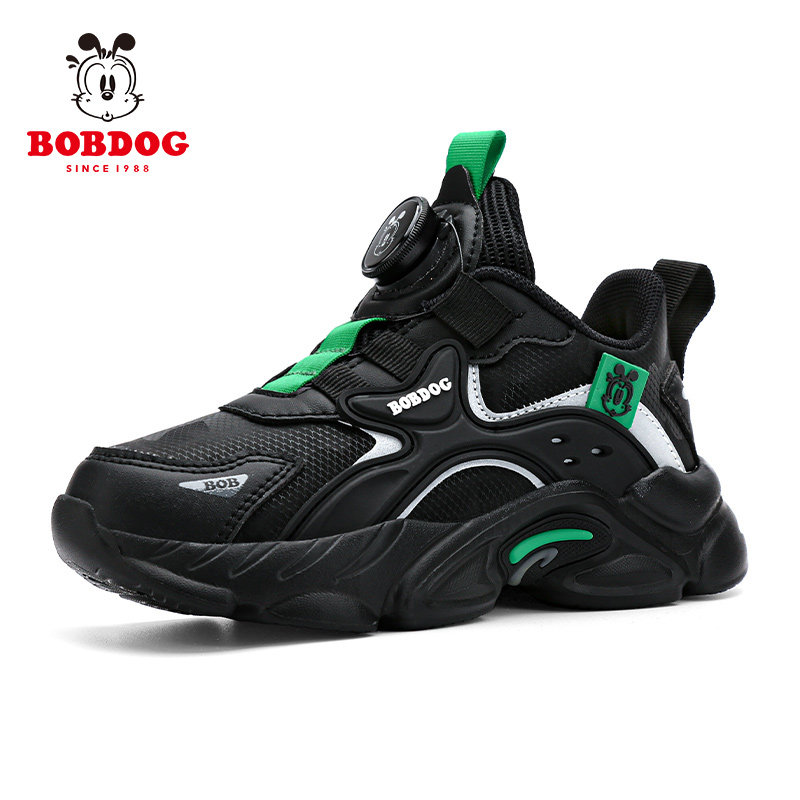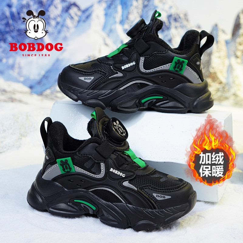 巴布豆男童鞋2026冬季加绒皮面中大童男孩冬鞋儿童运动鞋跑步旋转