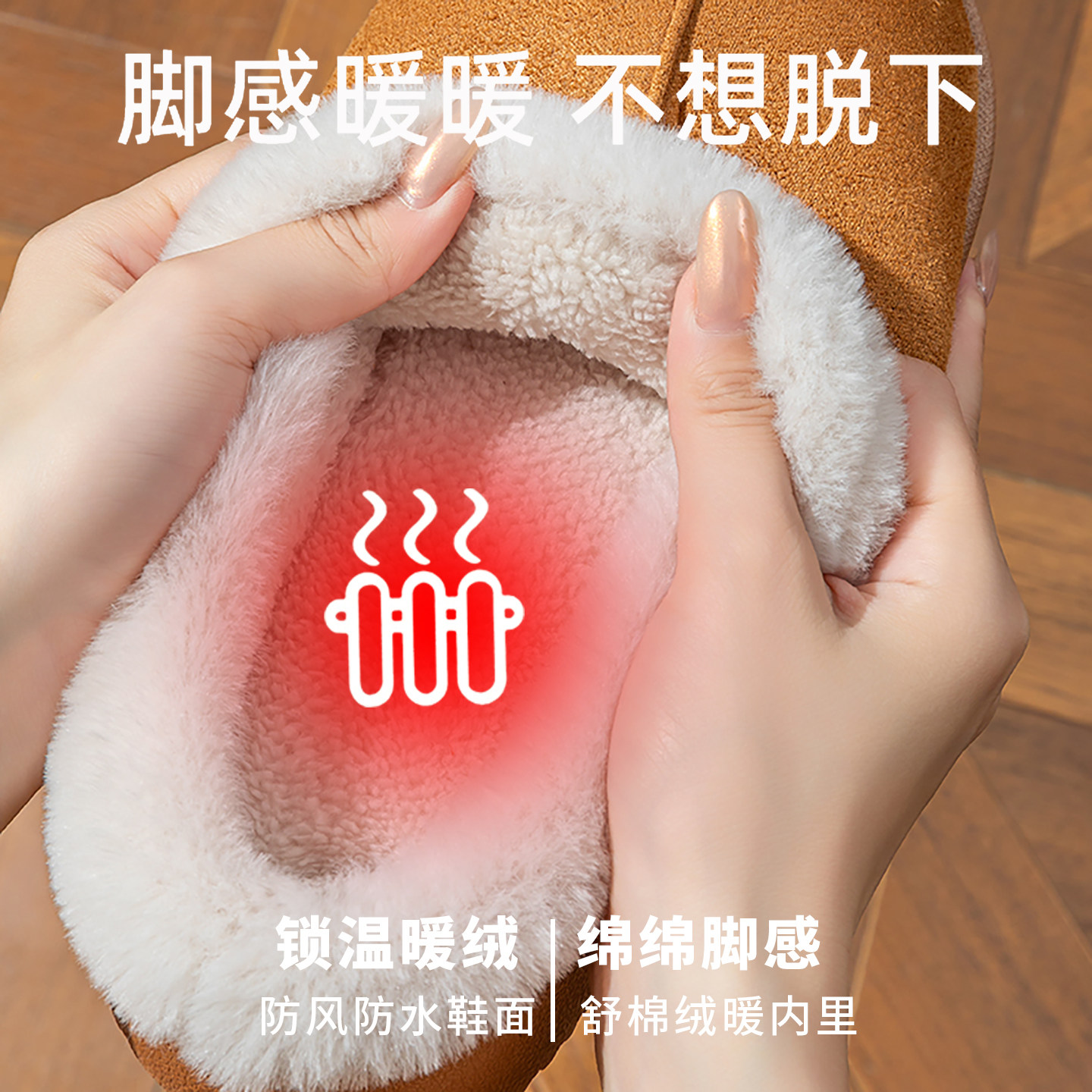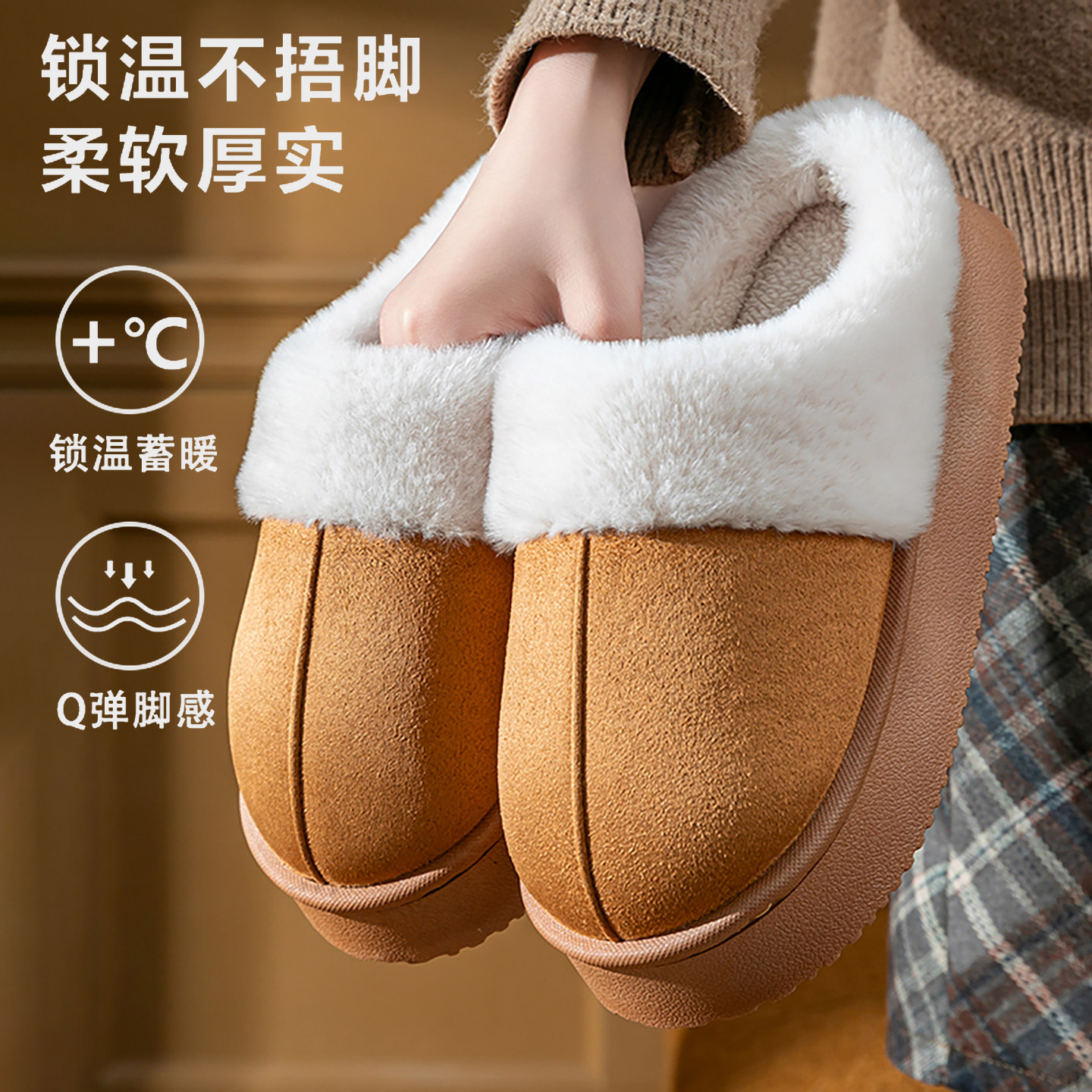 秋冬季2025新款翻半包跟棉拖加绒保暖情侣外穿毛毛绒厚底防滑居家