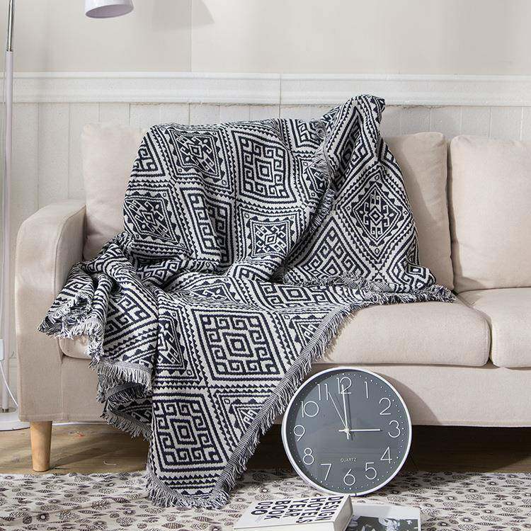 回纹格简约家居装饰线毯沙发巾沙发套防尘罩全盖休闲毯现货
