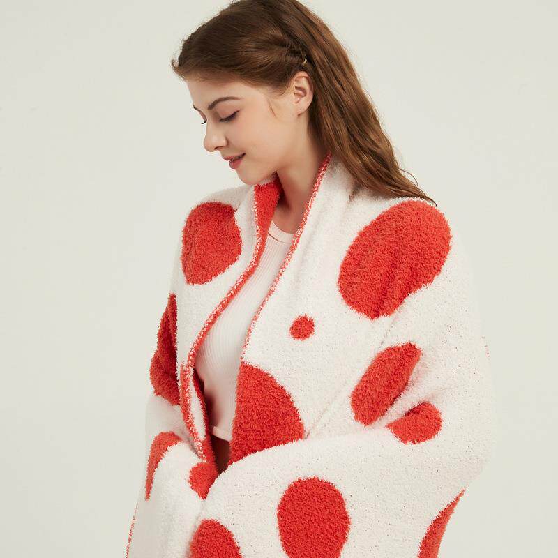 A类半边绒南瓜波点毛线毯沙发盖毯软装搭配午休午睡毯斯利波
