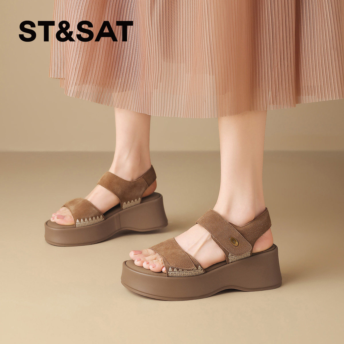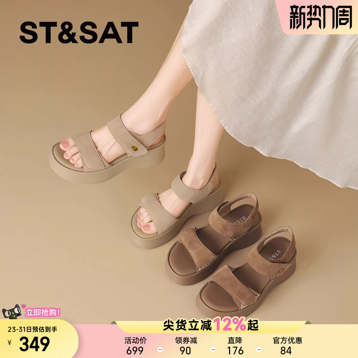 星期六厚底休闲凉鞋女士2026夏季新款时尚松糕底增高罗马运动凉鞋