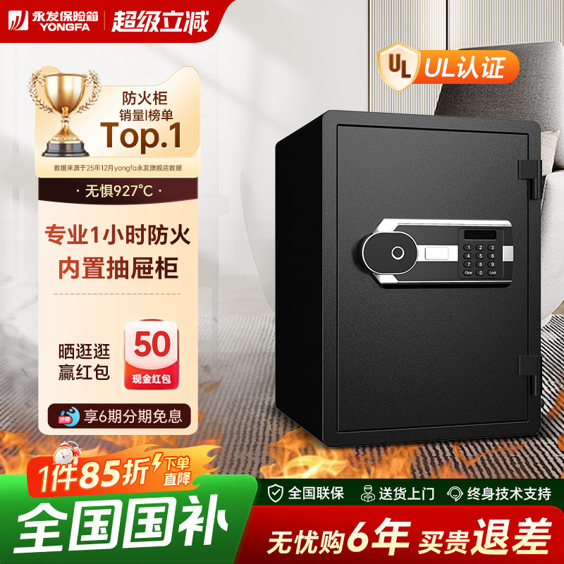 【防火保险箱】YONGFA永发专业防火保险箱全钢重型保险柜小型50/60cm高家用办公指纹密码美国UL认证保管箱