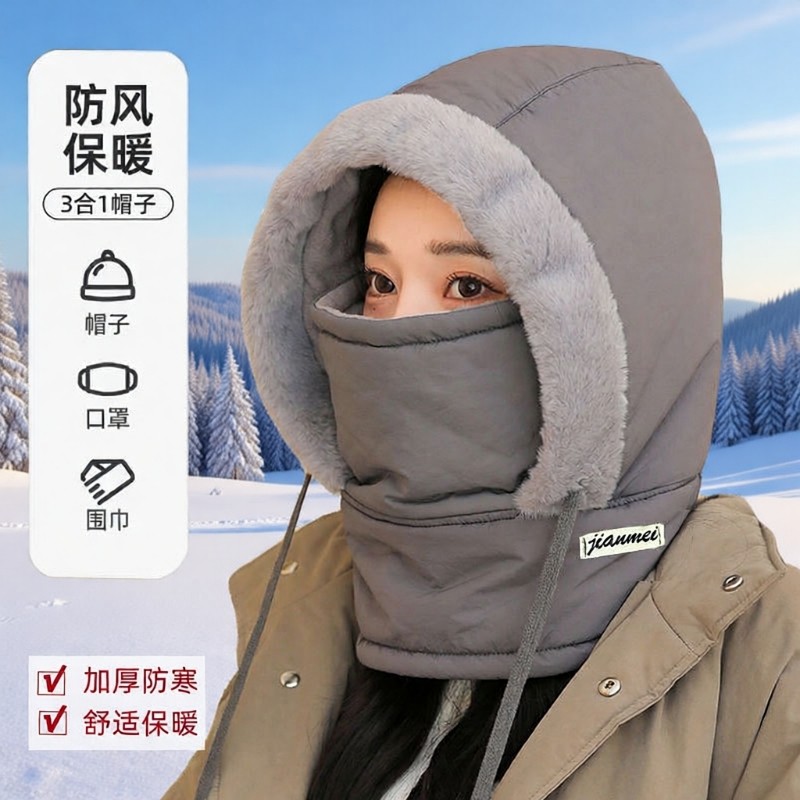 防寒护耳冬天防风头套围脖一体电动车骑行保暖头盔内胆帽子女面罩