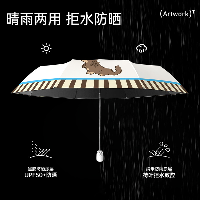 Cikatu西卡图派对小狗自动伞晴雨两用结实抗风伞女可爱风折叠雨伞