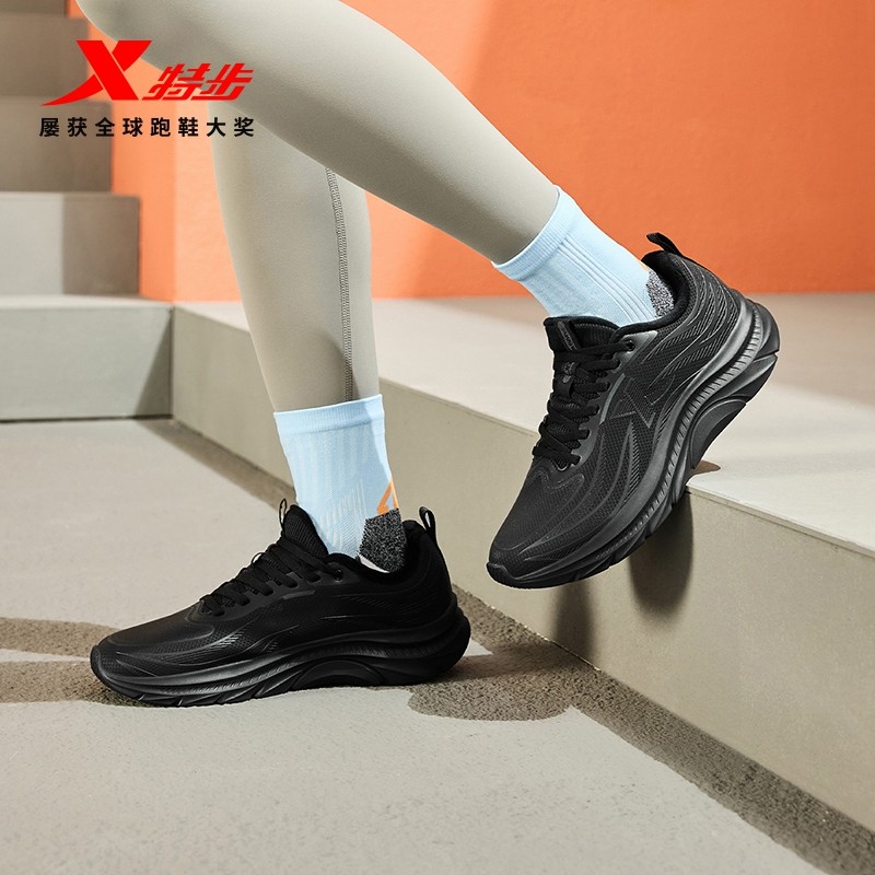 特步运动鞋女鞋冬季新款网面轻便皮面防泼水软底妈妈减震跑步鞋男