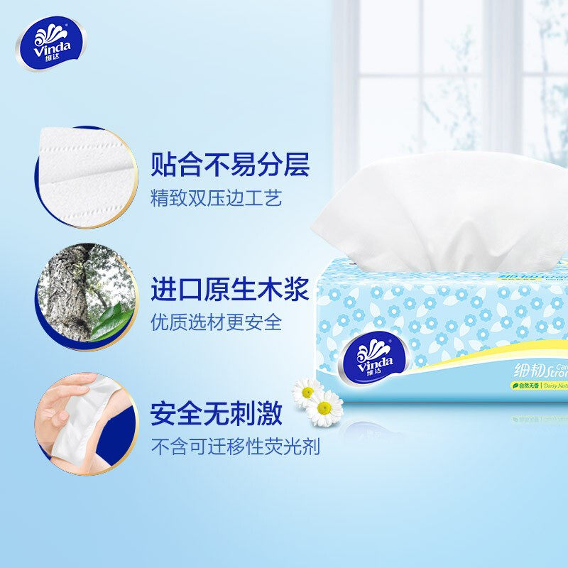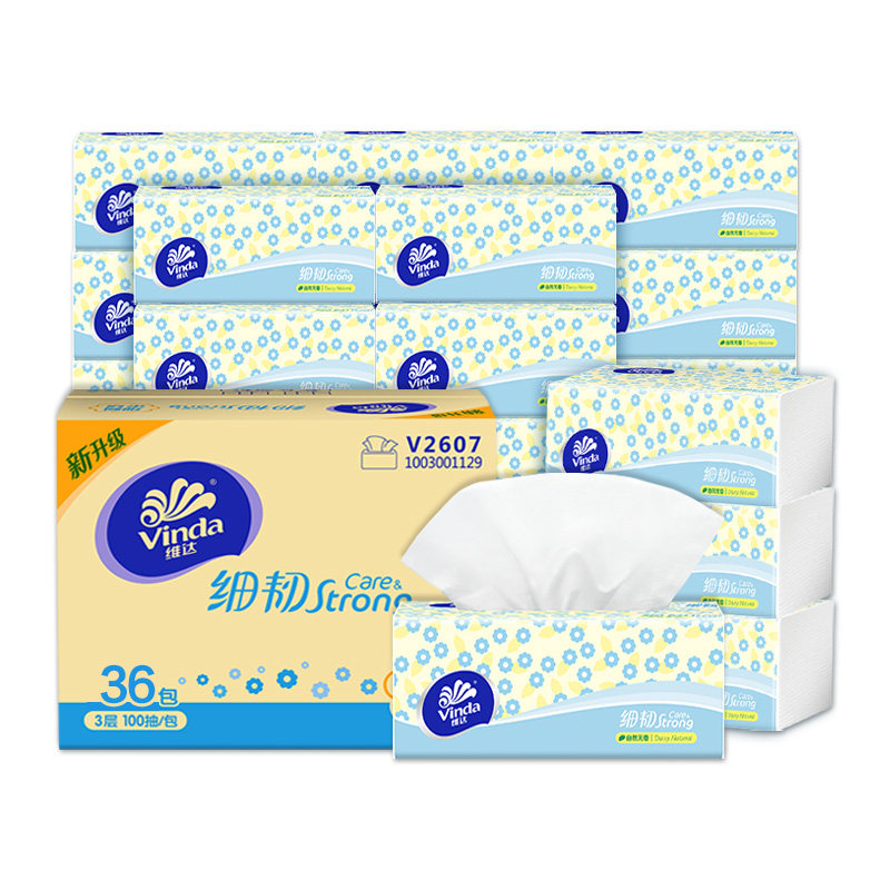 维达细韧纸巾抽纸三层100抽家用餐巾纸卫生纸面巾纸抽家庭实惠装