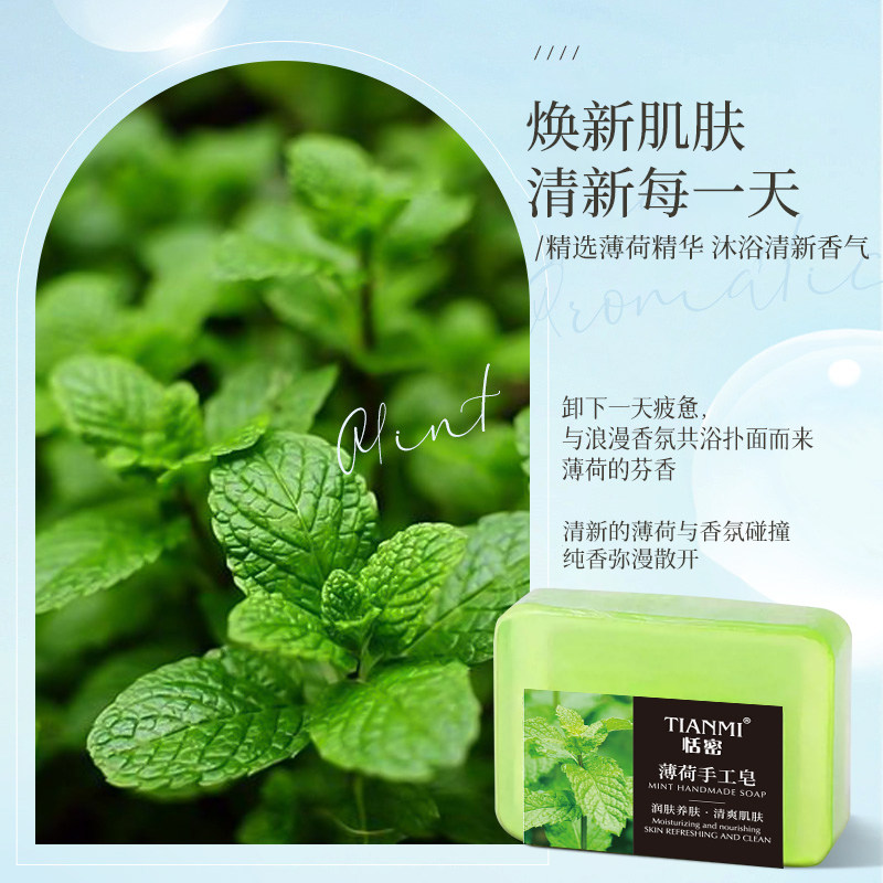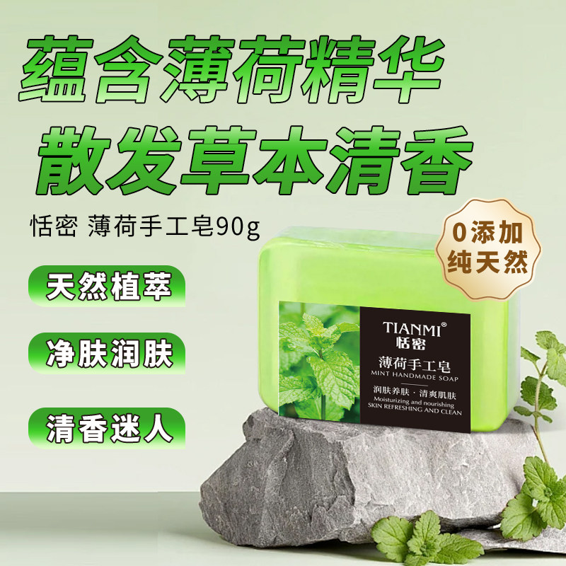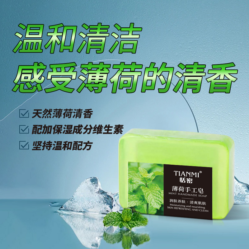 恬密清凉薄荷手工皂香皂清洁控油泡沫绵密沐浴便携装旅行洗手国货