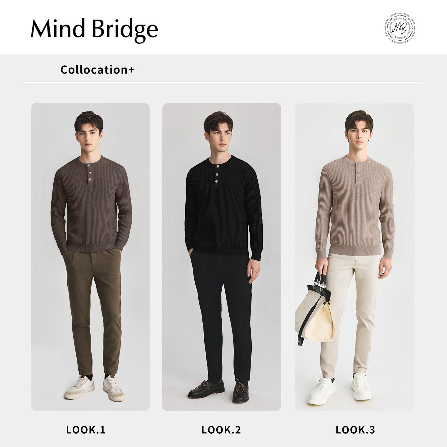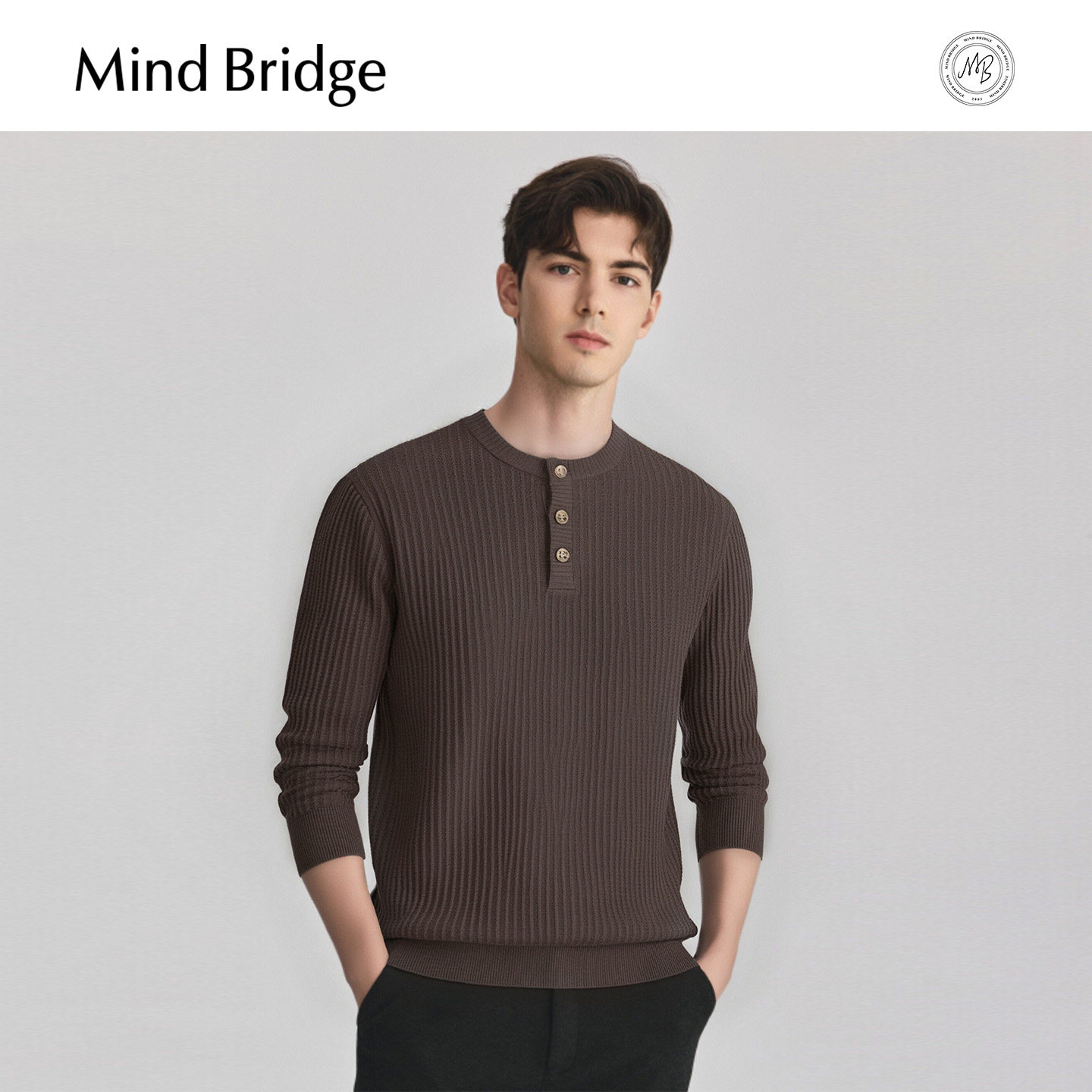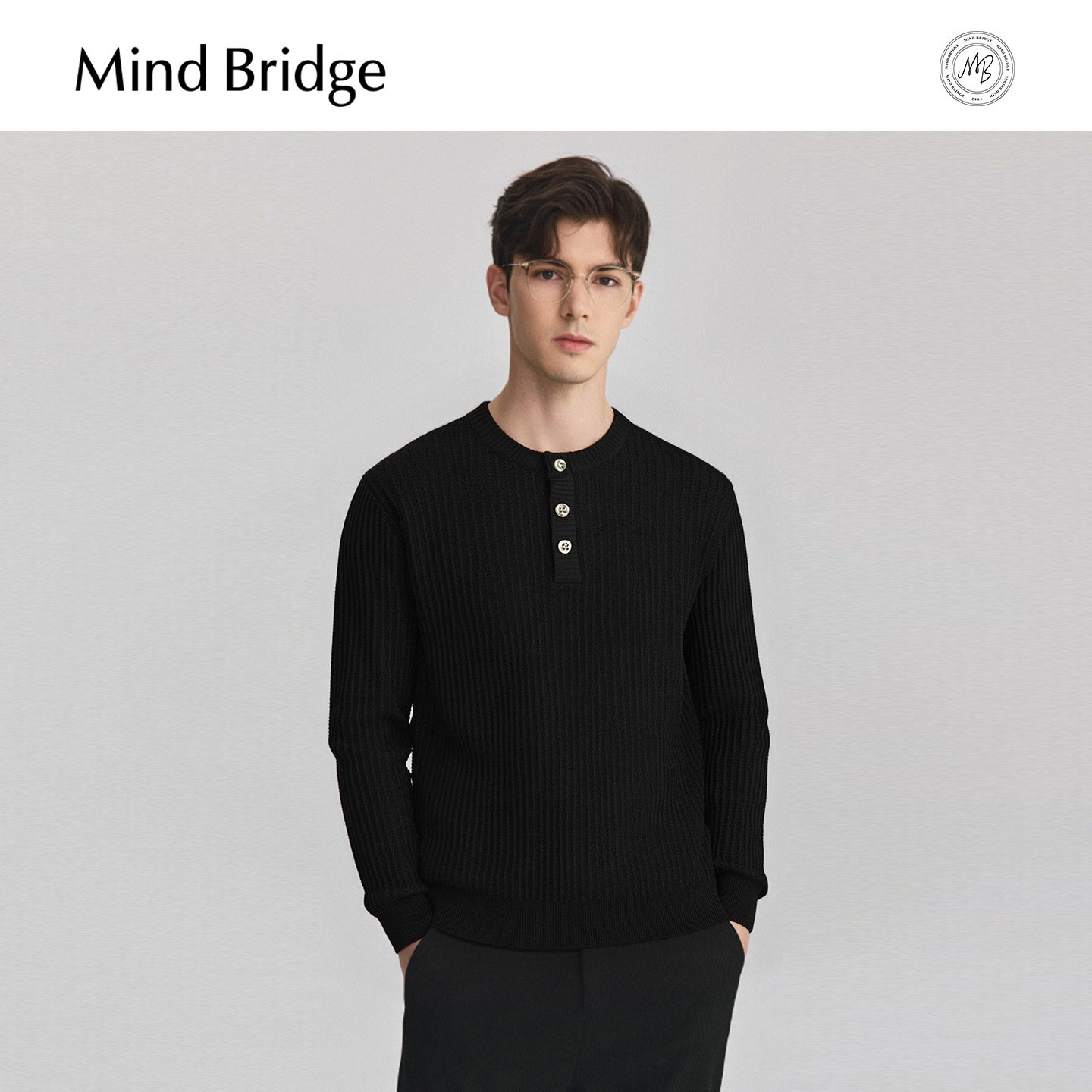 MindBridge【绵羊毛】男士纯色亨利领毛衣2025年冬肌理感厚款针织