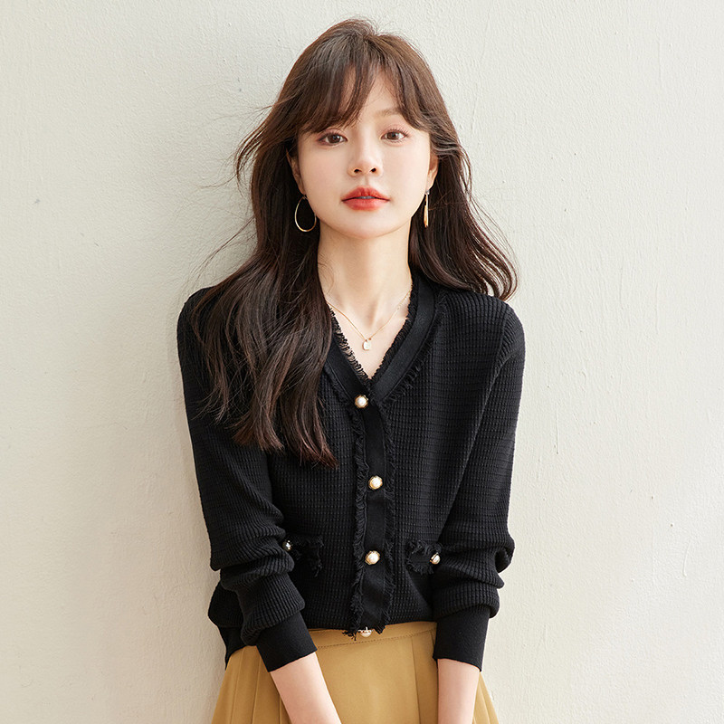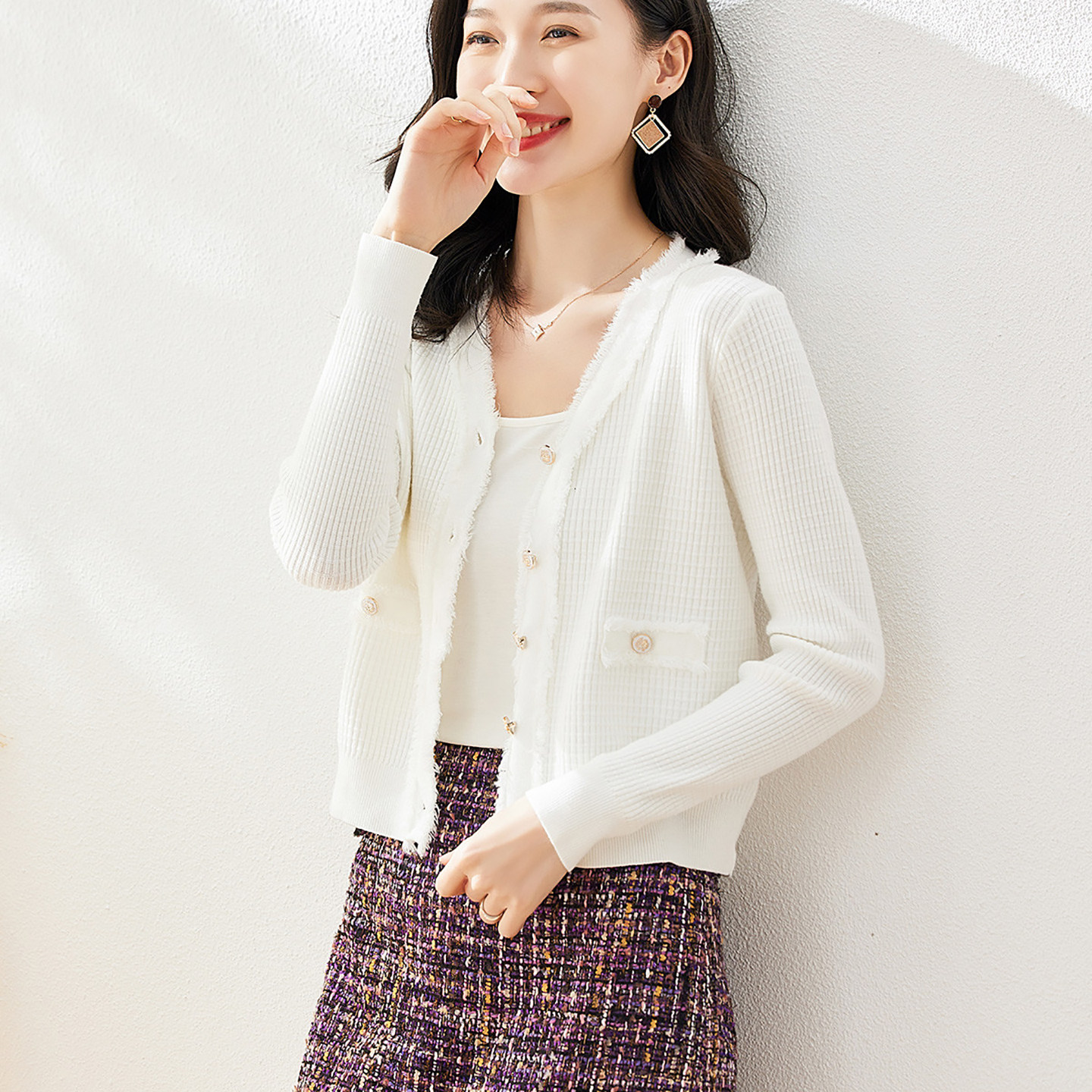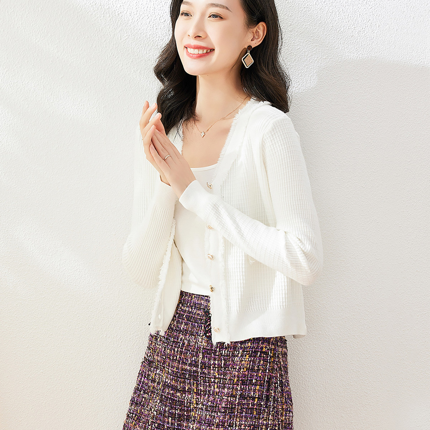 KP真维斯小香风针织开衫长袖外套外穿毛衣女韩系纯色设计感针织衫