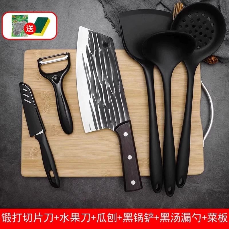 龙泉刀具菜板菜刀二合一家用套装手工锻打切片刀专用全套厨具开刃