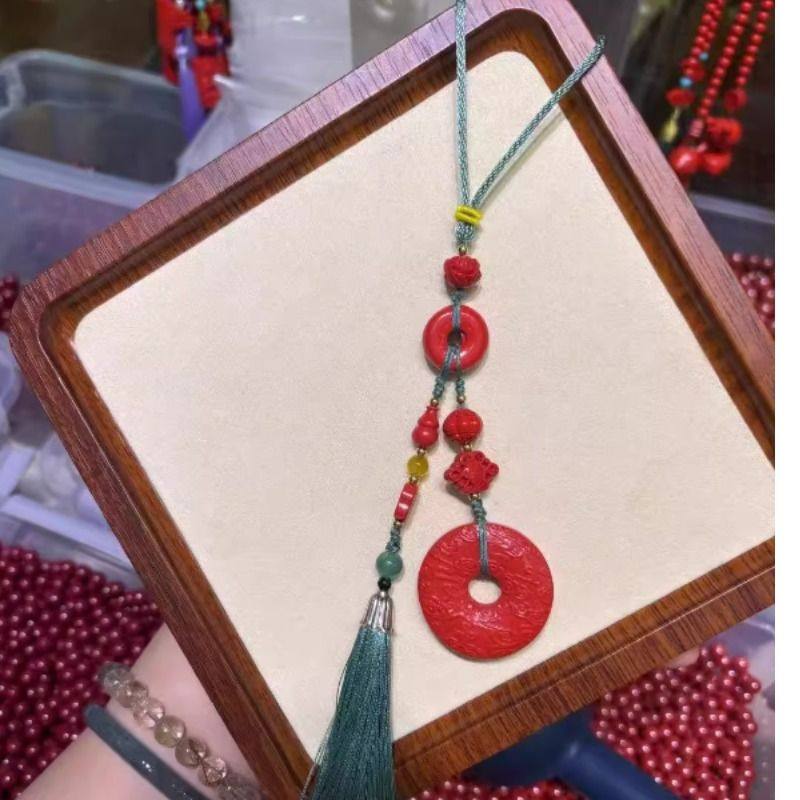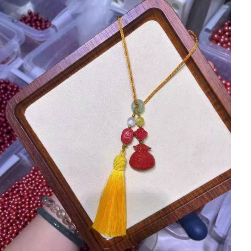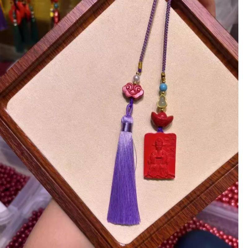 八方来财车挂朱砂六字真言古风流苏车挂走四方随身随车佩饰送男女