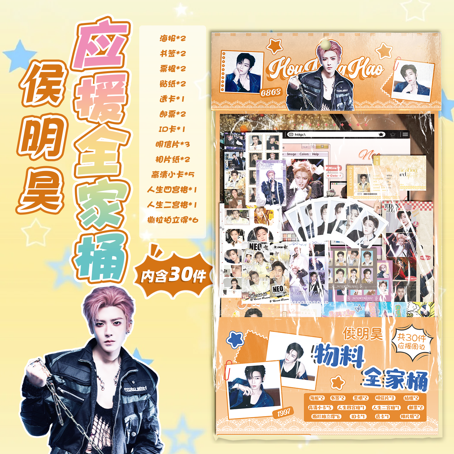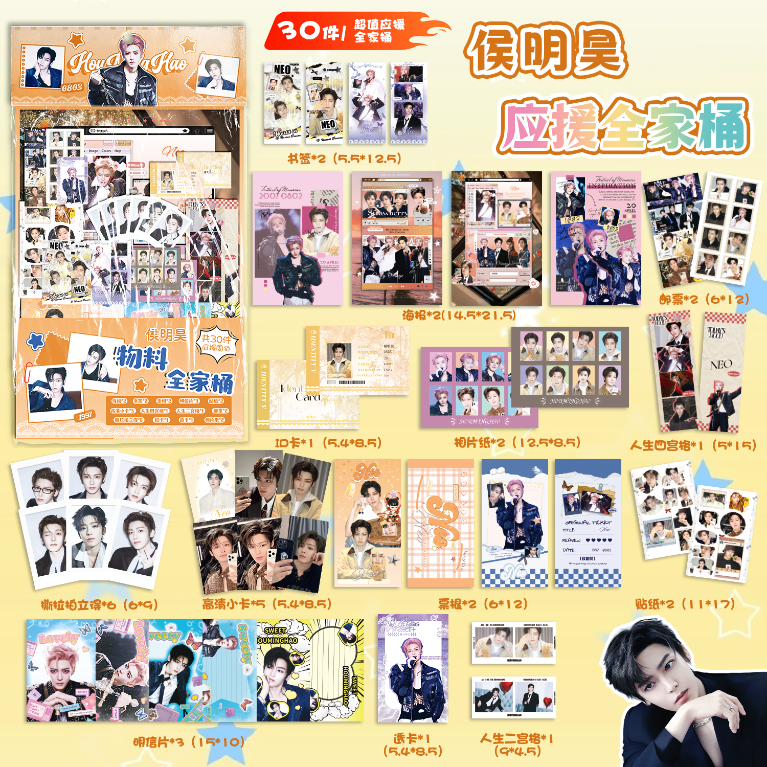 侯明昊应援物料全家桶明星周边书签镭射小卡透卡明信片30件大礼包