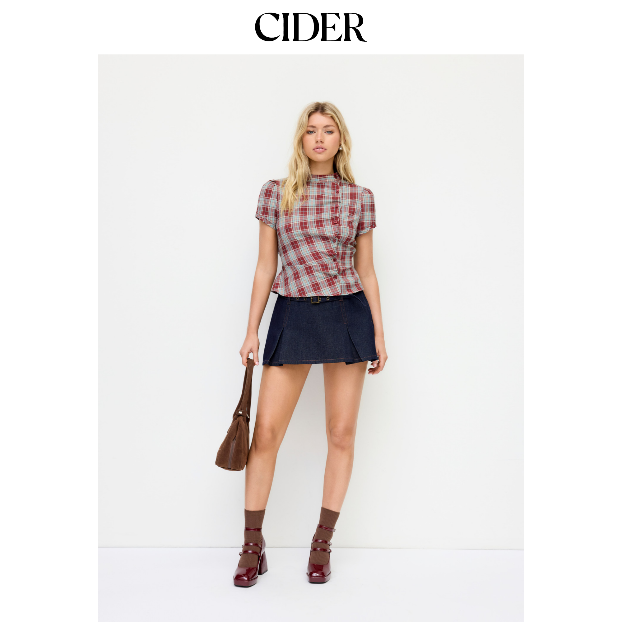 CIDER 夏季新品女装牛仔低腰针扣迷你半身裙114734467