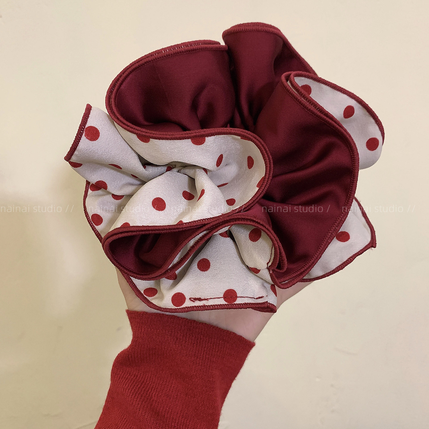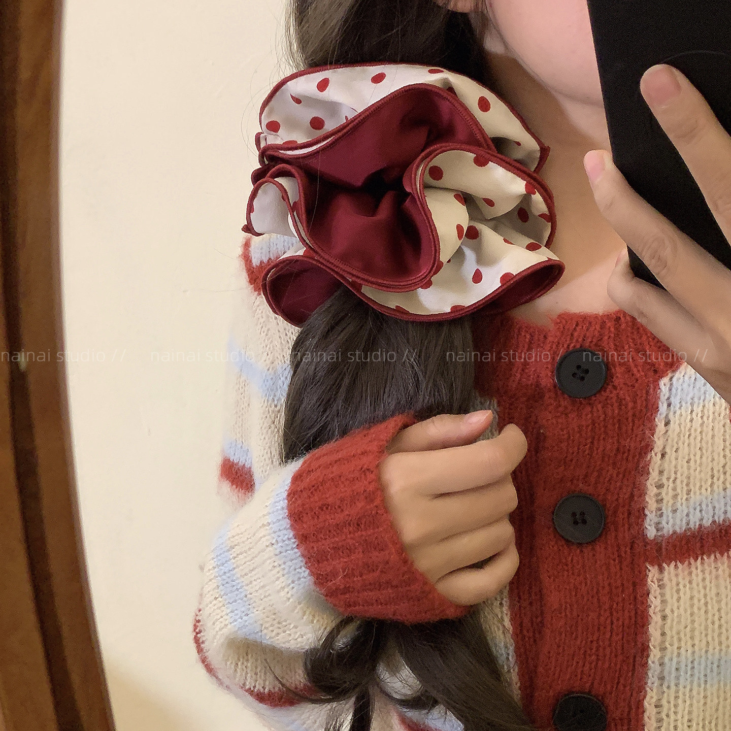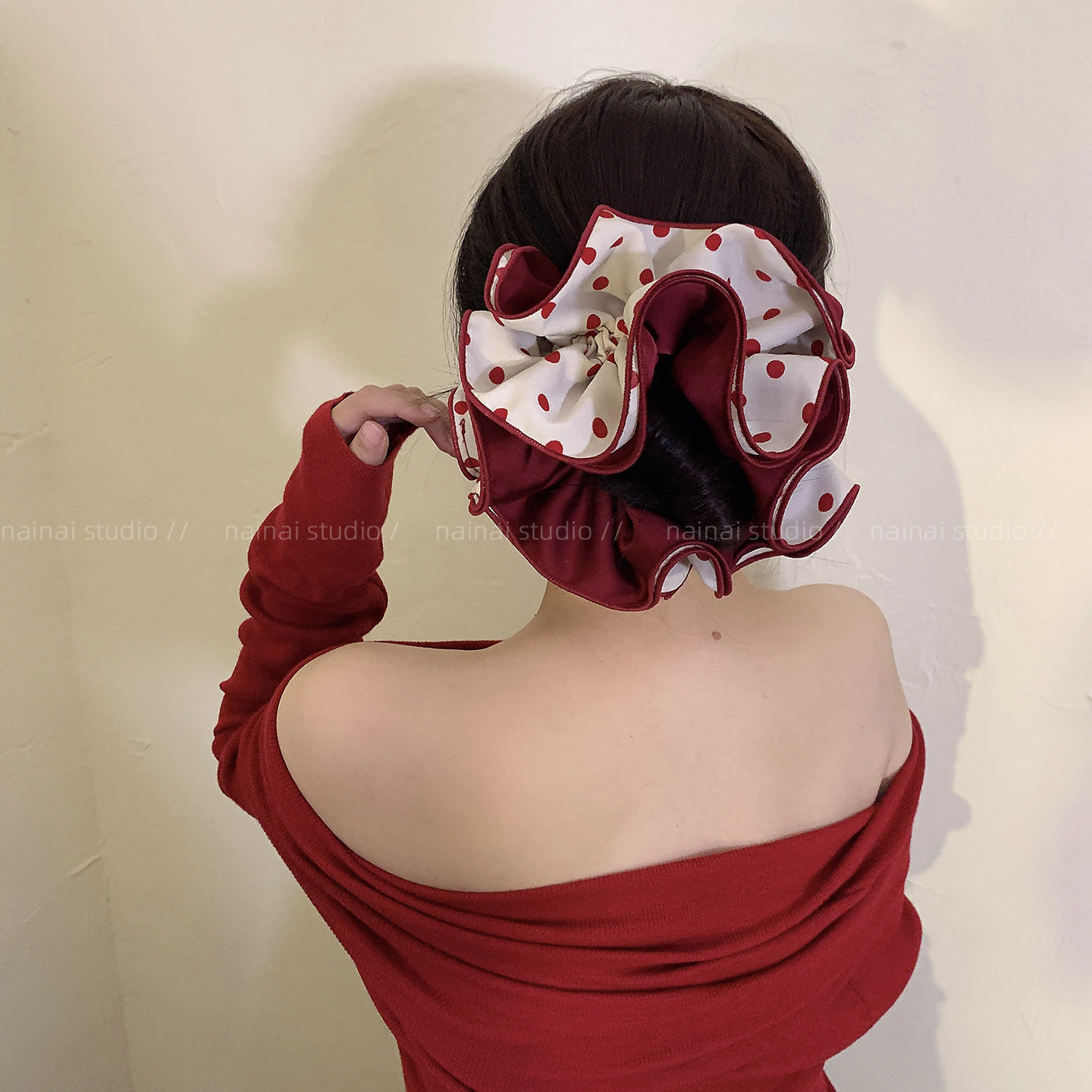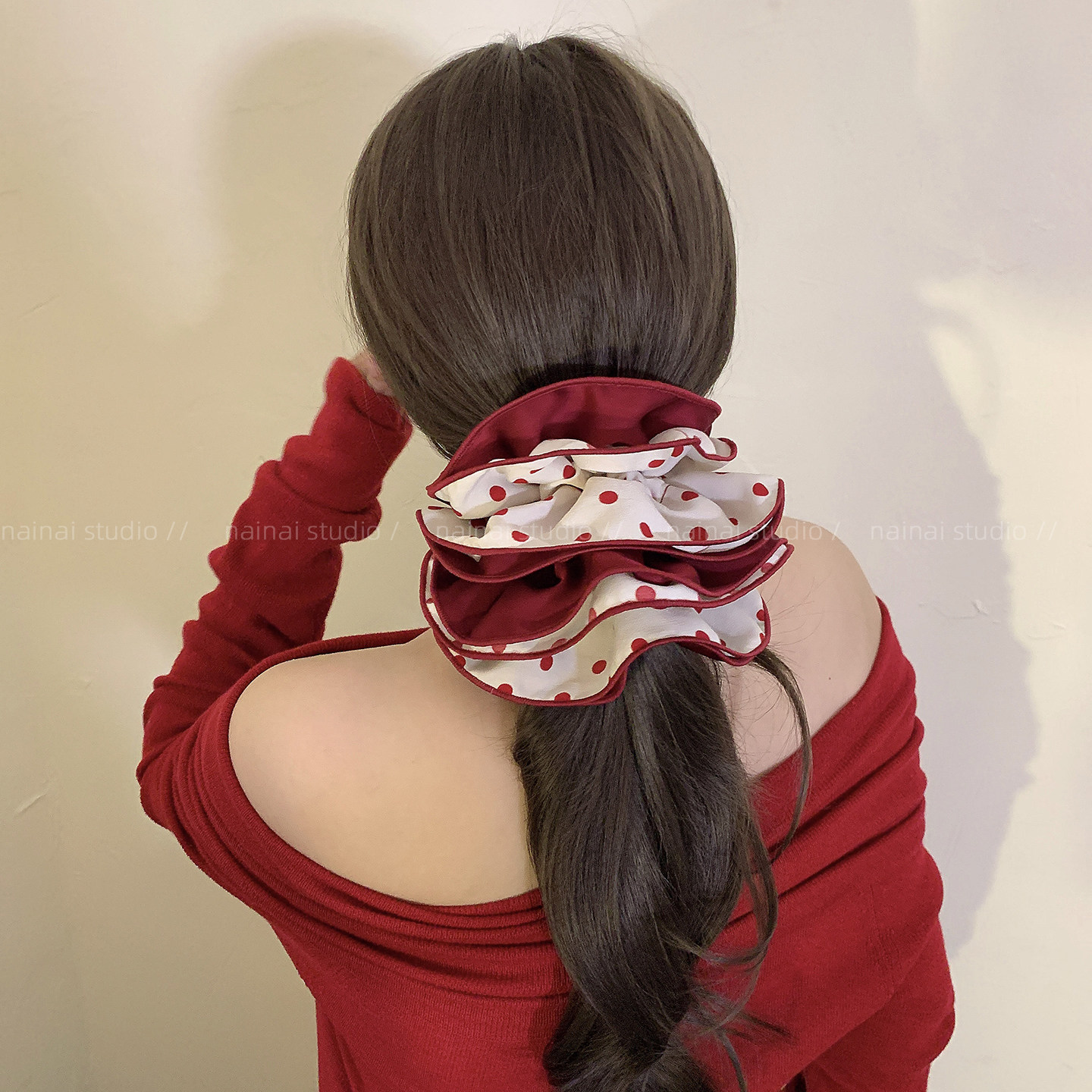 红色波点大肠发圈~圣诞节新年节日范围感四层大号丸子头发绳头绳