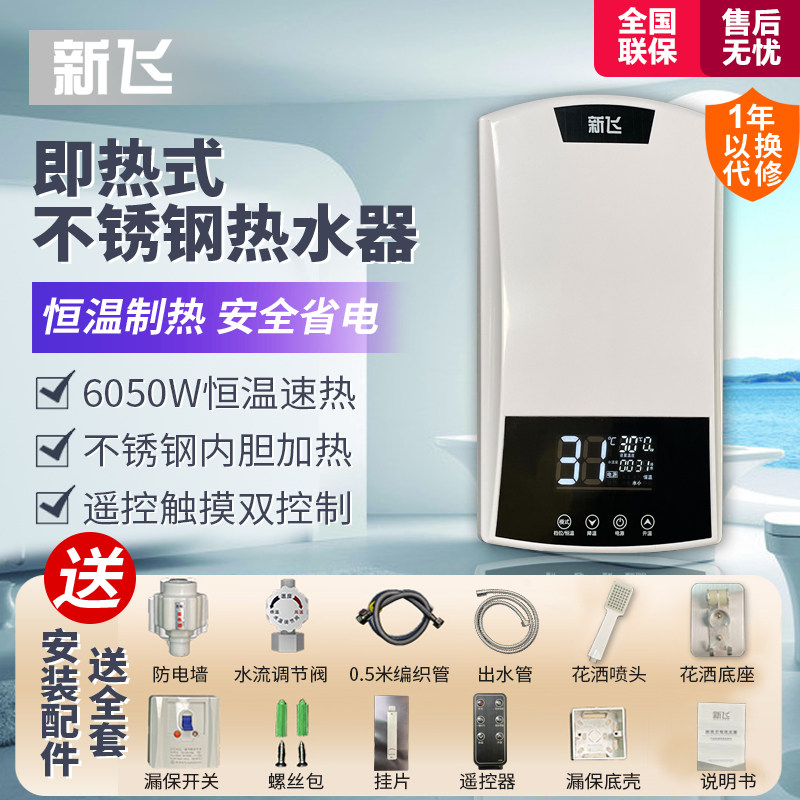 新飞即热式电热水器家用变频恒温卫生间廊理发店免储水小型速热式