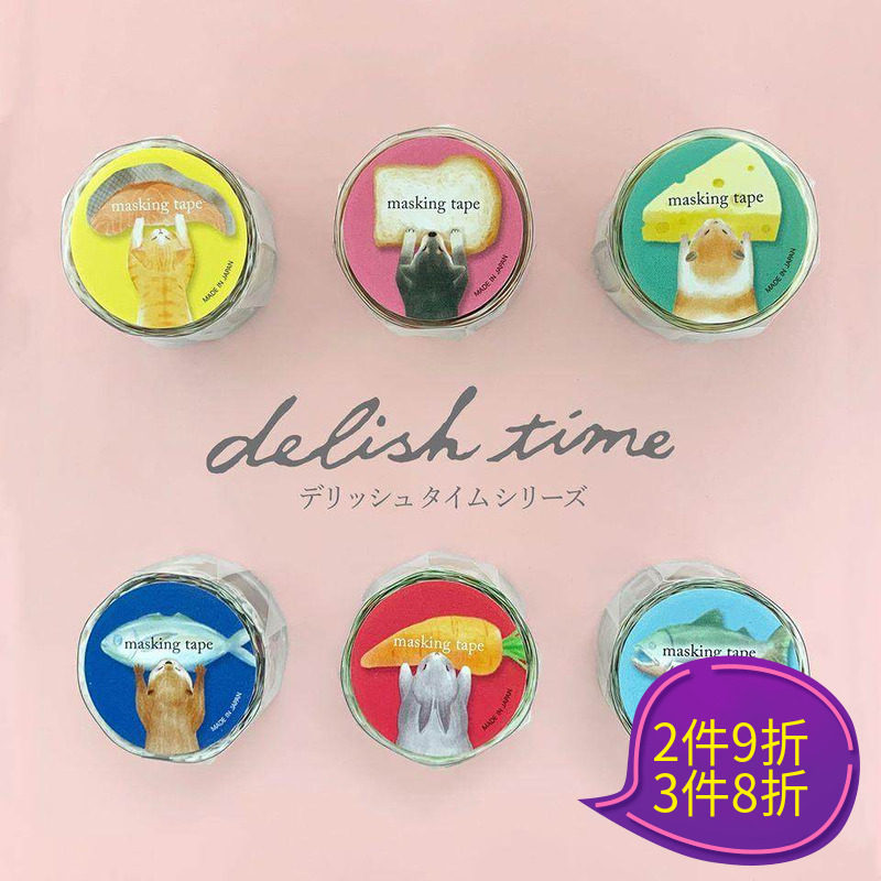 日本mind wave美味时间delish time造型纸胶带异型模切贪吃动物小猫小狗仓鼠兔子白熊水獭手帐相册装饰18mm