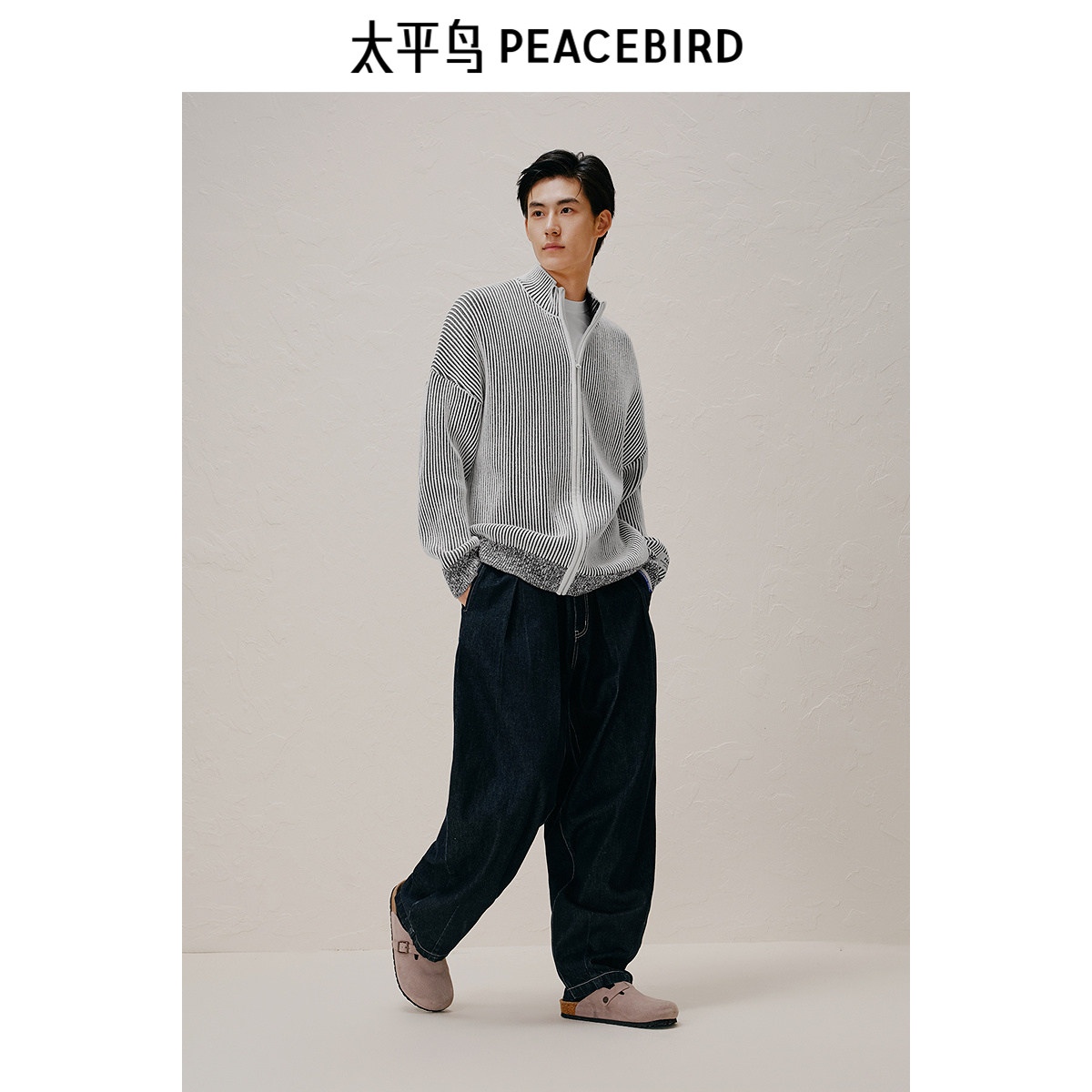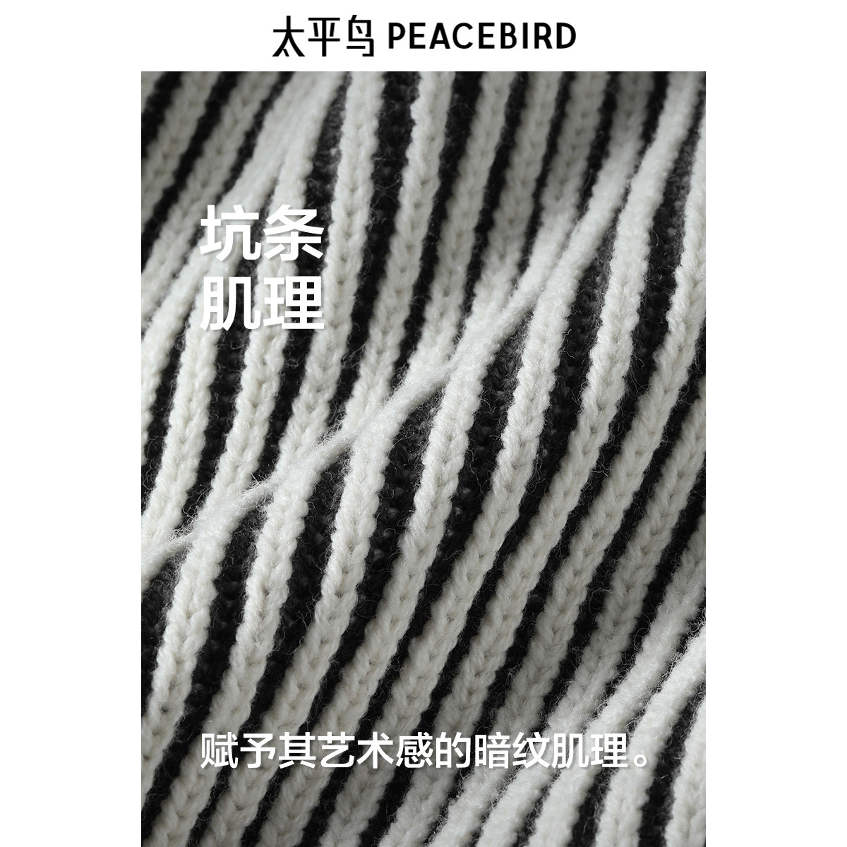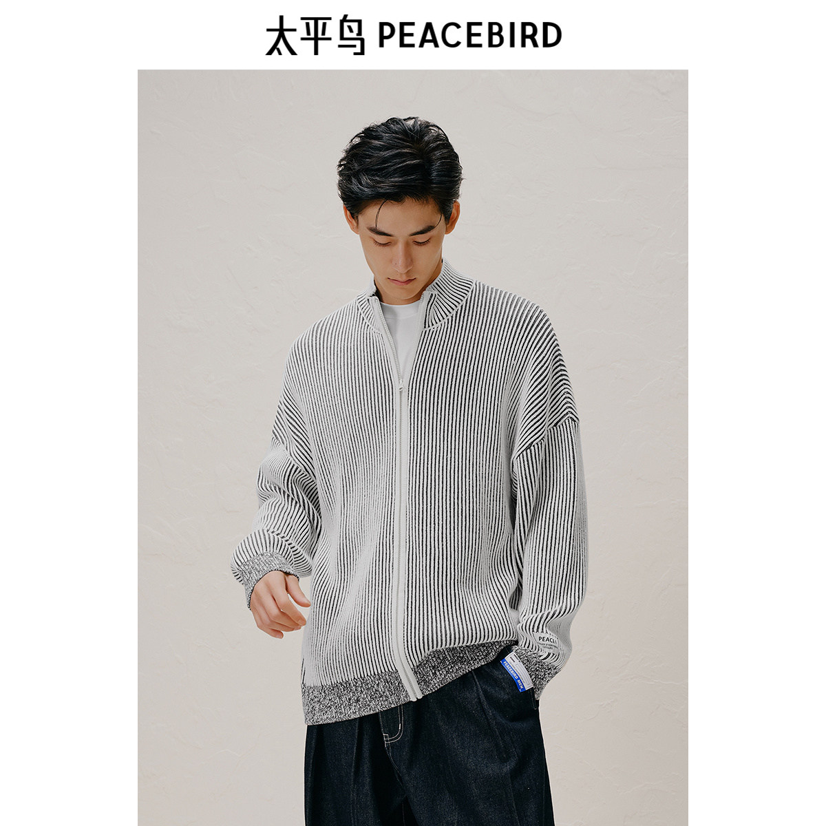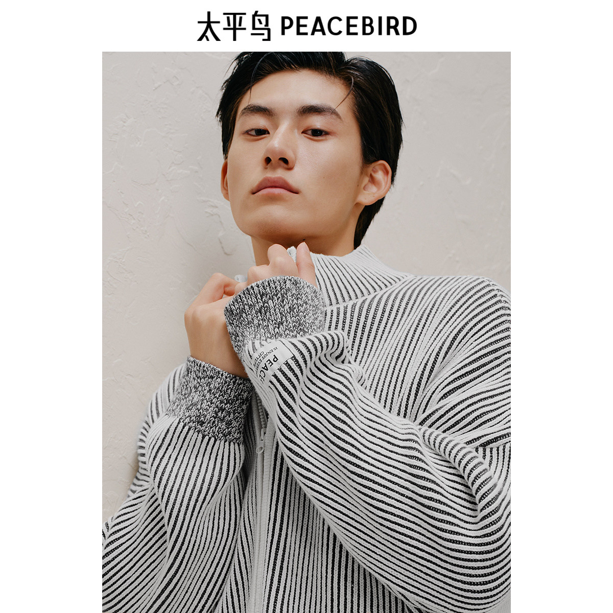 太平鸟男装 肌理感休闲毛衣立领潮流毛开衫百搭条纹针织毛衫