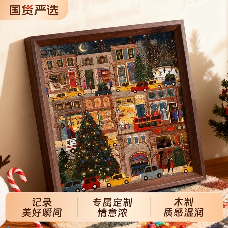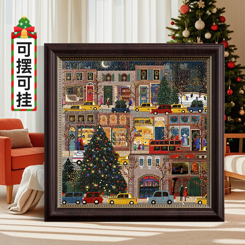 galison圣诞冬灯拼图相框画框架挂墙装裱500 1000片50*50拼图裱框