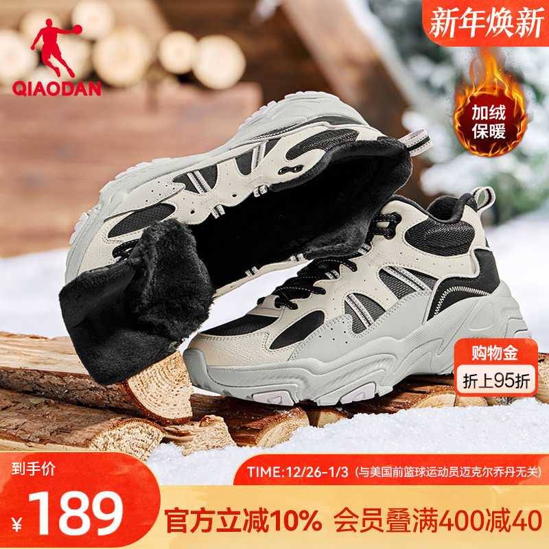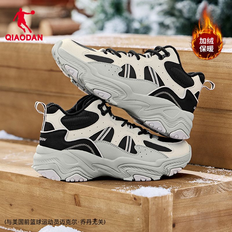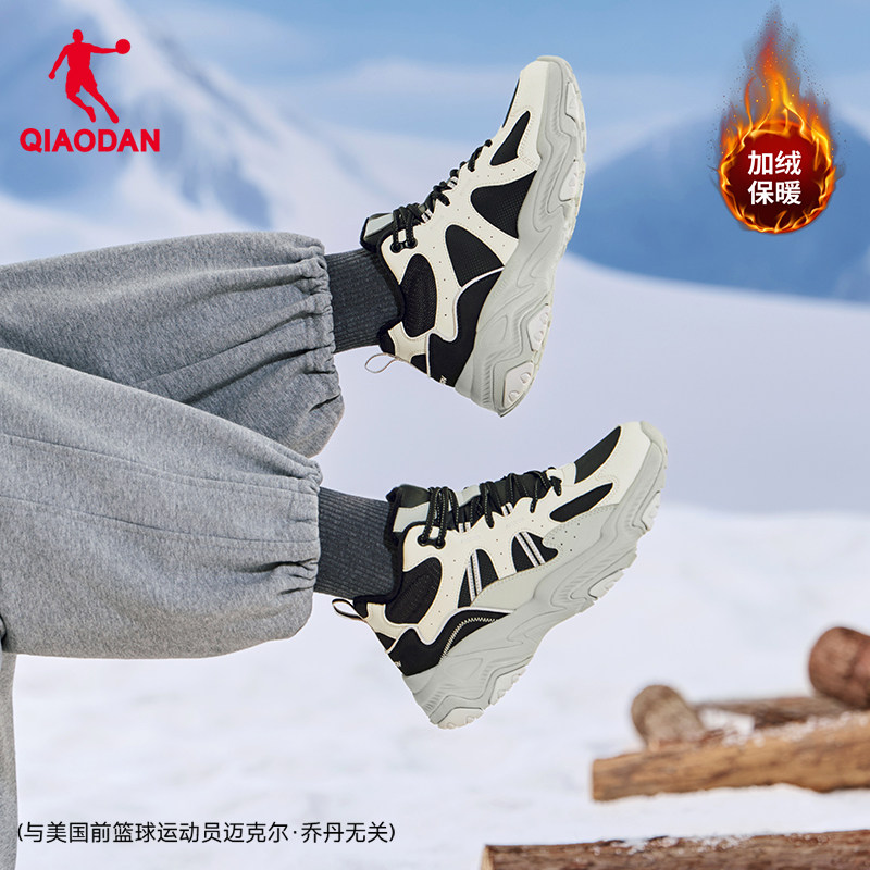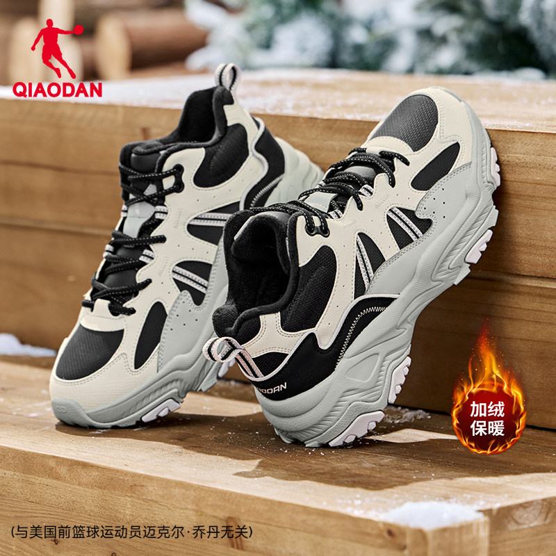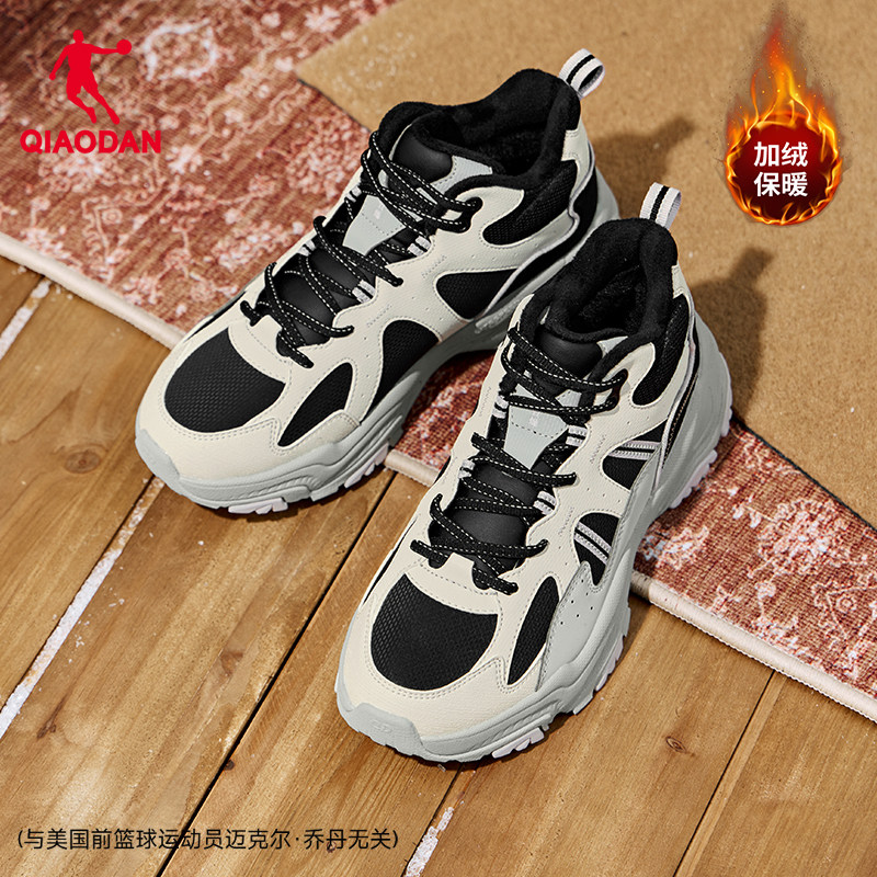 乔丹小千禧皮面防水休闲鞋女2025新款加绒保暖老爹鞋学生运动鞋子