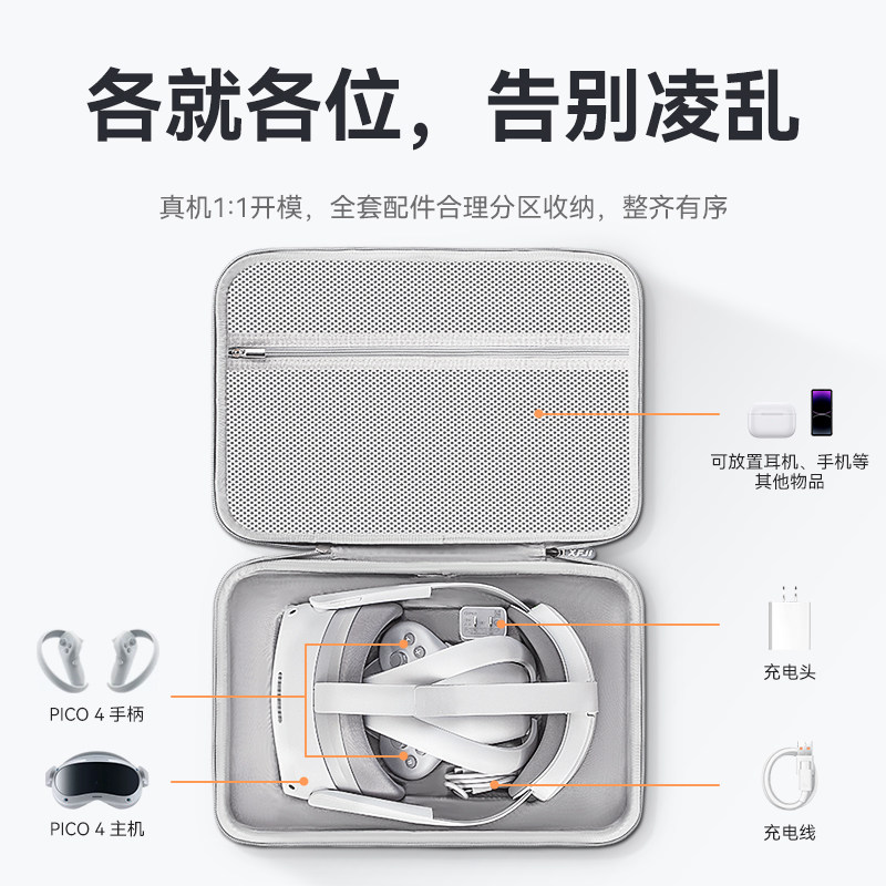 XFJI适用PICO 4 Ultra收纳包pico4pro一体机便携盒VR智能眼镜保护配件包pico neo4硬壳单肩斜挎包防摔防水袋
