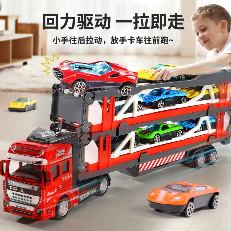 加长玩具拖车儿童男孩折叠弹射大卡车双层运输汽车货车男童3到6岁