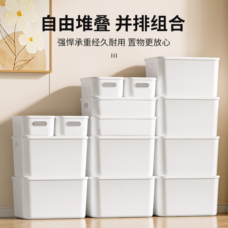 桌面收纳盒家用化妆品杂物零食长方形储物筐杂物整理箱塑料置物盒