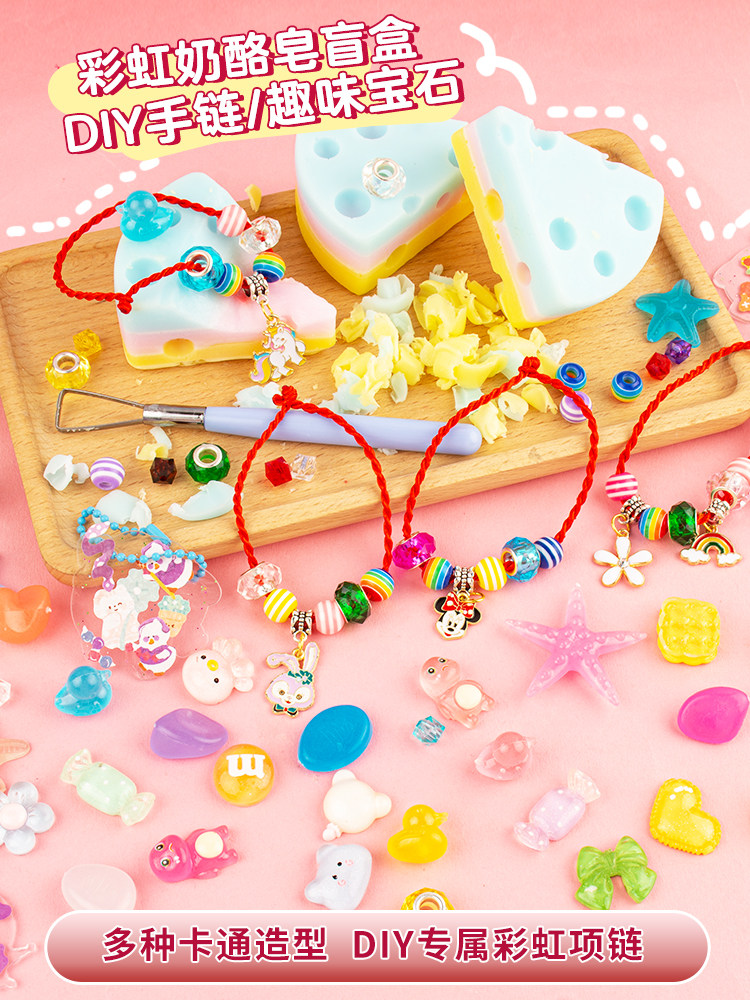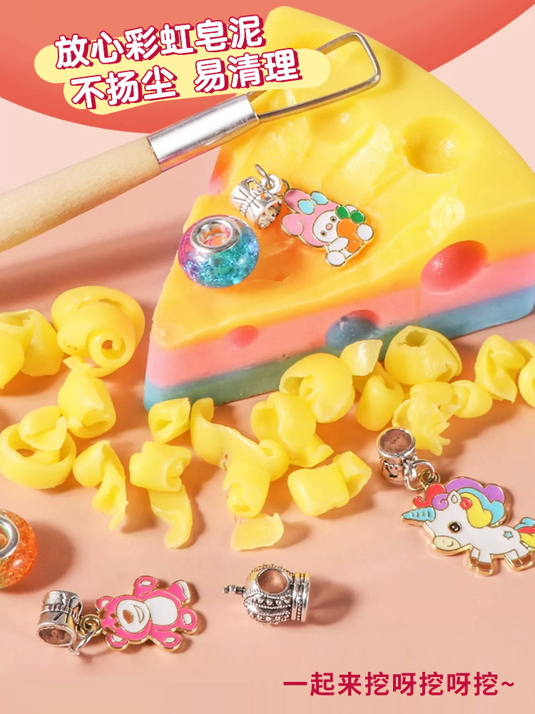 挖宝石彩虹皂盲盒儿童考古挖掘寻宝藏玩具女孩刮肥皂手工diy手链