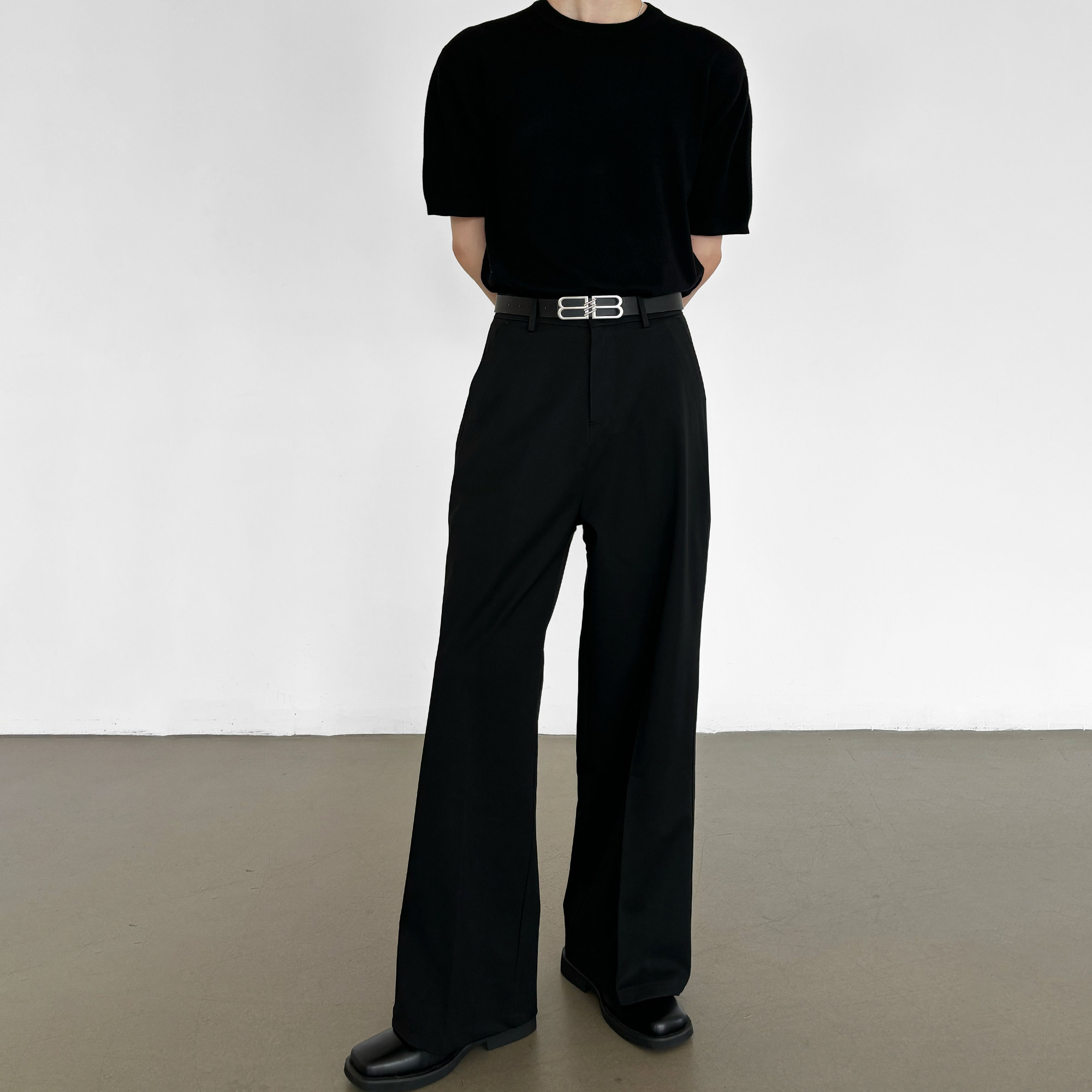 秋冬微喇叭裤男垂感弹力阔腿裤免烫修身西裤宽松复古直筒休闲裤子