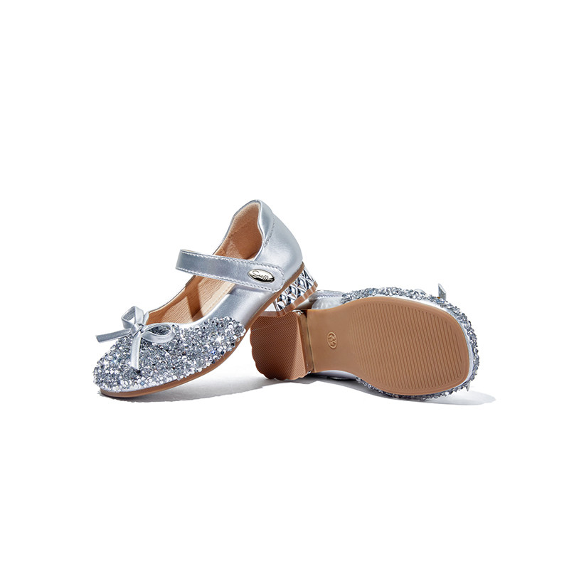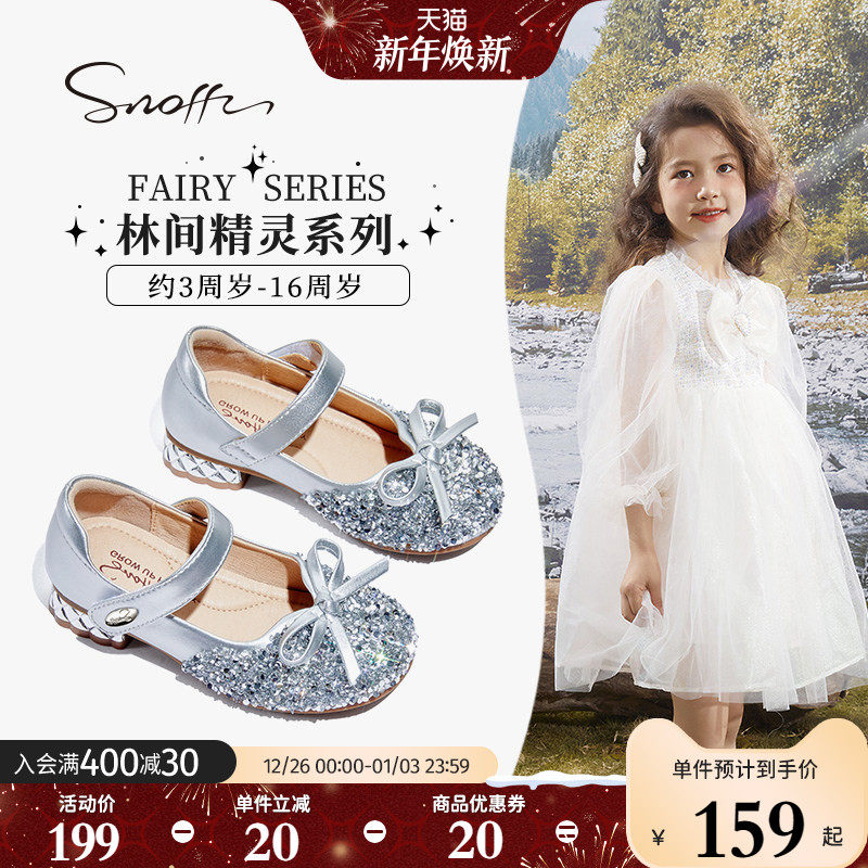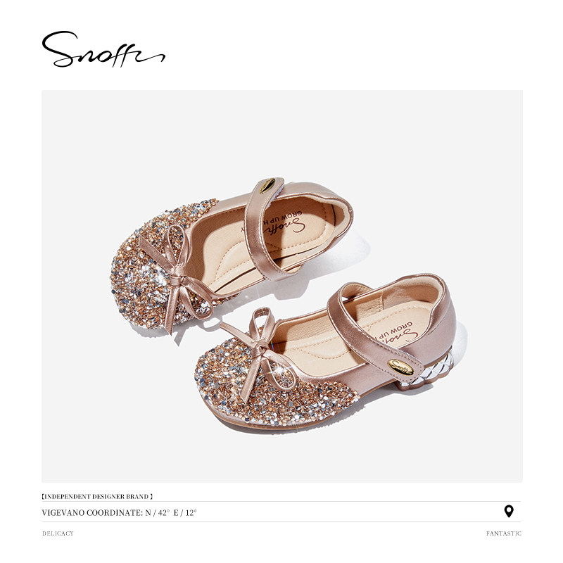 斯纳菲儿童高跟鞋女童水晶鞋2025春秋新款小公主闪亮单皮鞋礼服鞋