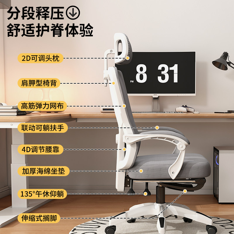 人体工学椅家用电脑椅舒适久坐办公椅书房靠背椅子宿舍电竞椅可躺