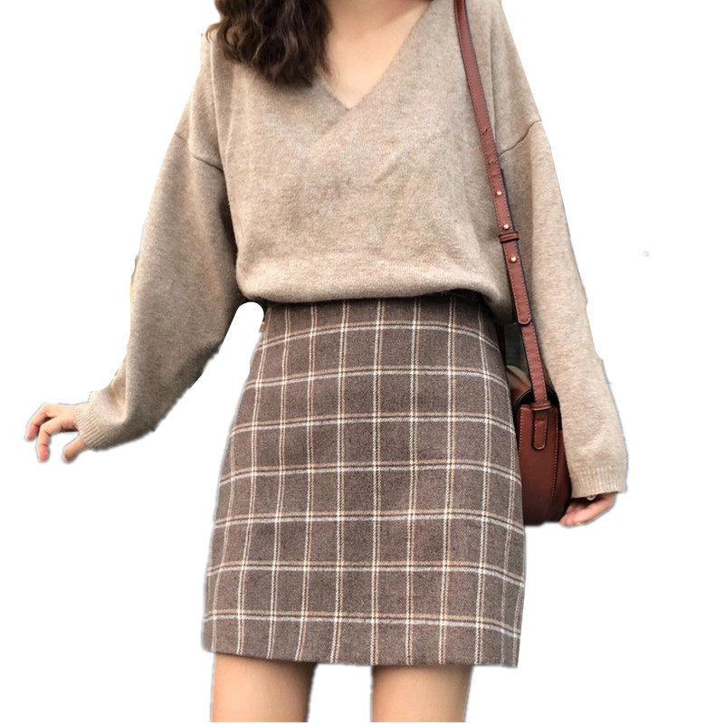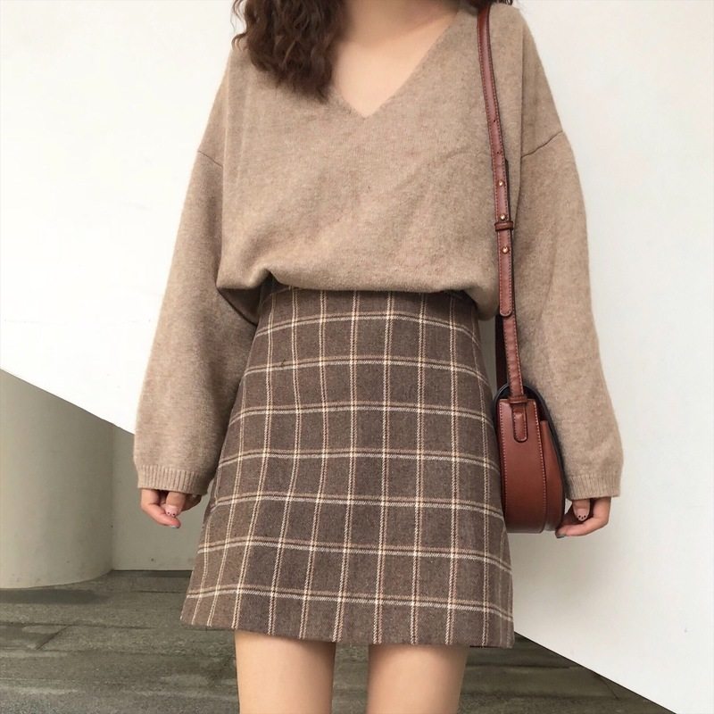毛呢格子半身裙2022秋冬新款大码胖mm短裙a字裙女格裙包臀一步裙