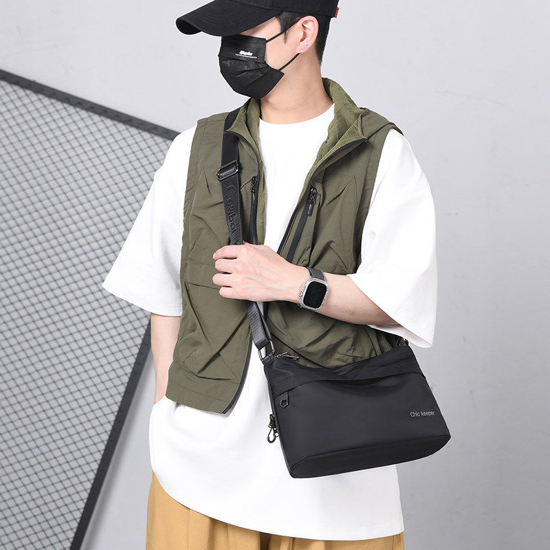 休闲商务男士小挎包单肩包男斜挎包平板包竖款挎肩包防水牛津布包